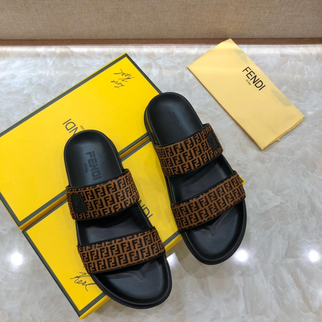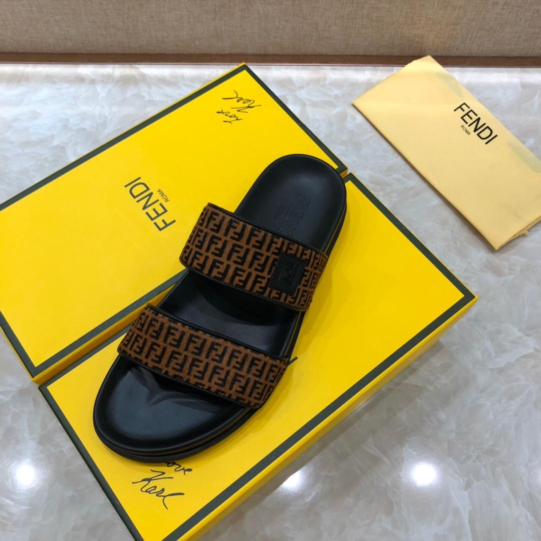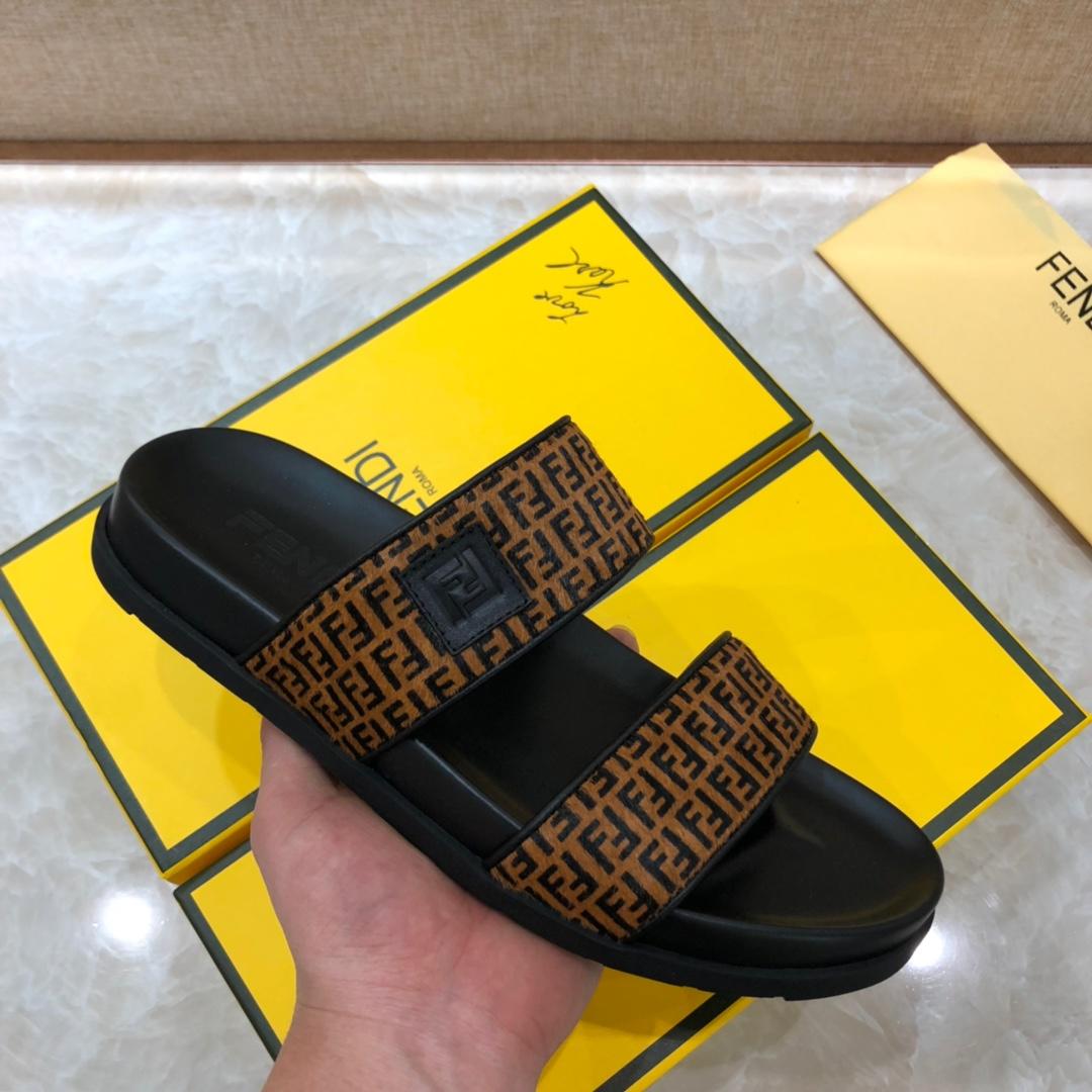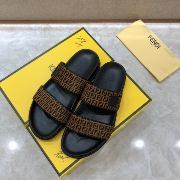 Replica Fendi black Slippers with brown canvas MS07238