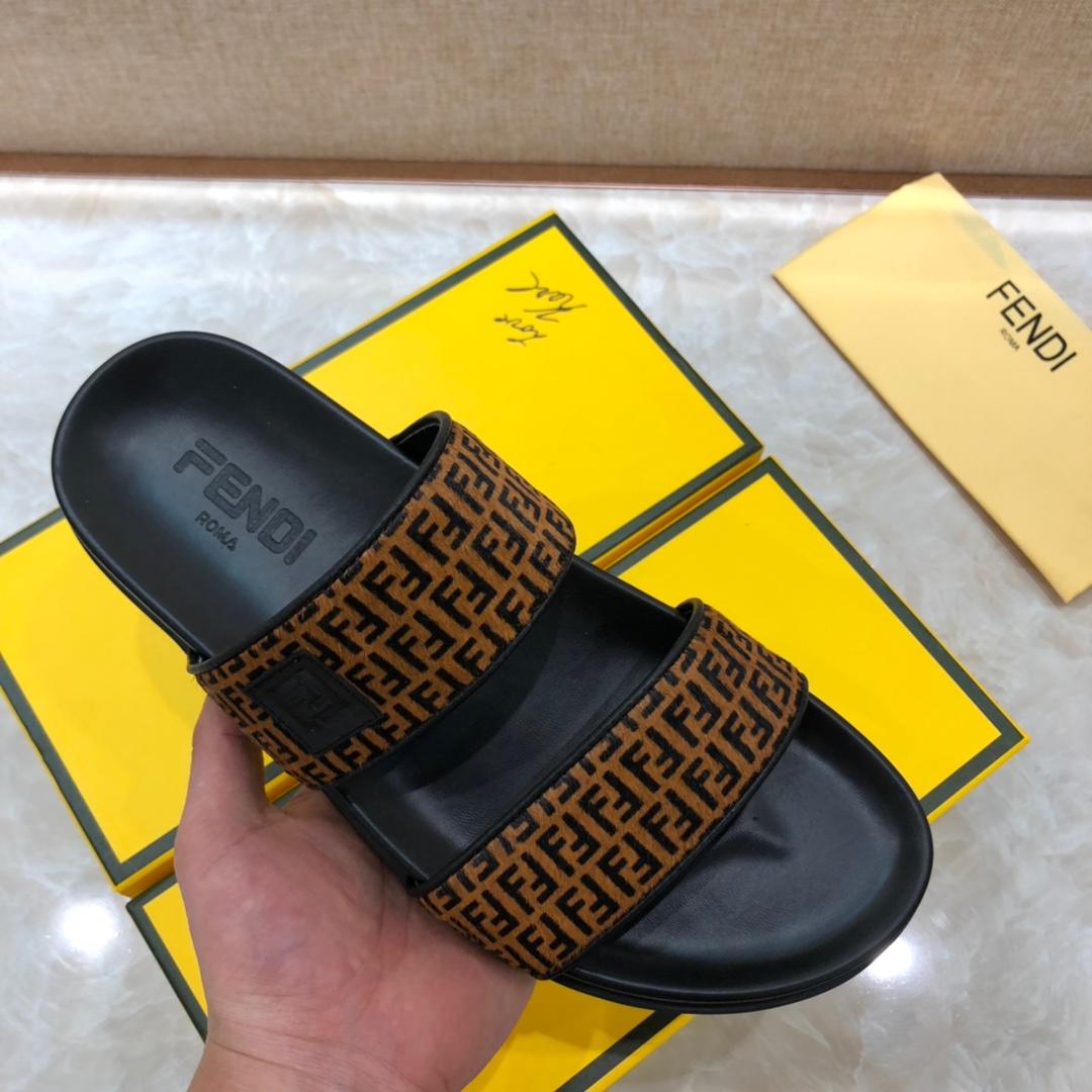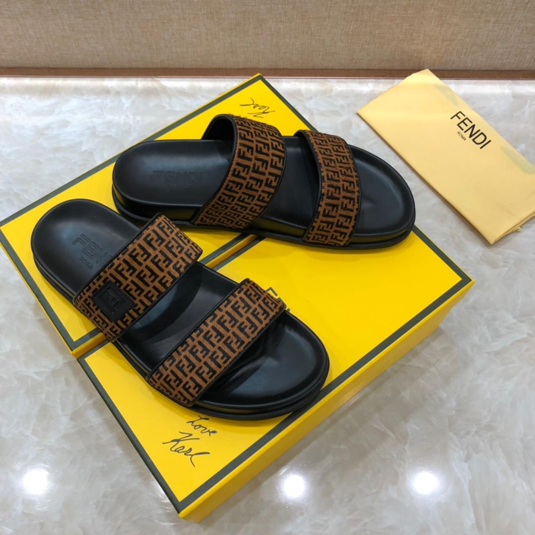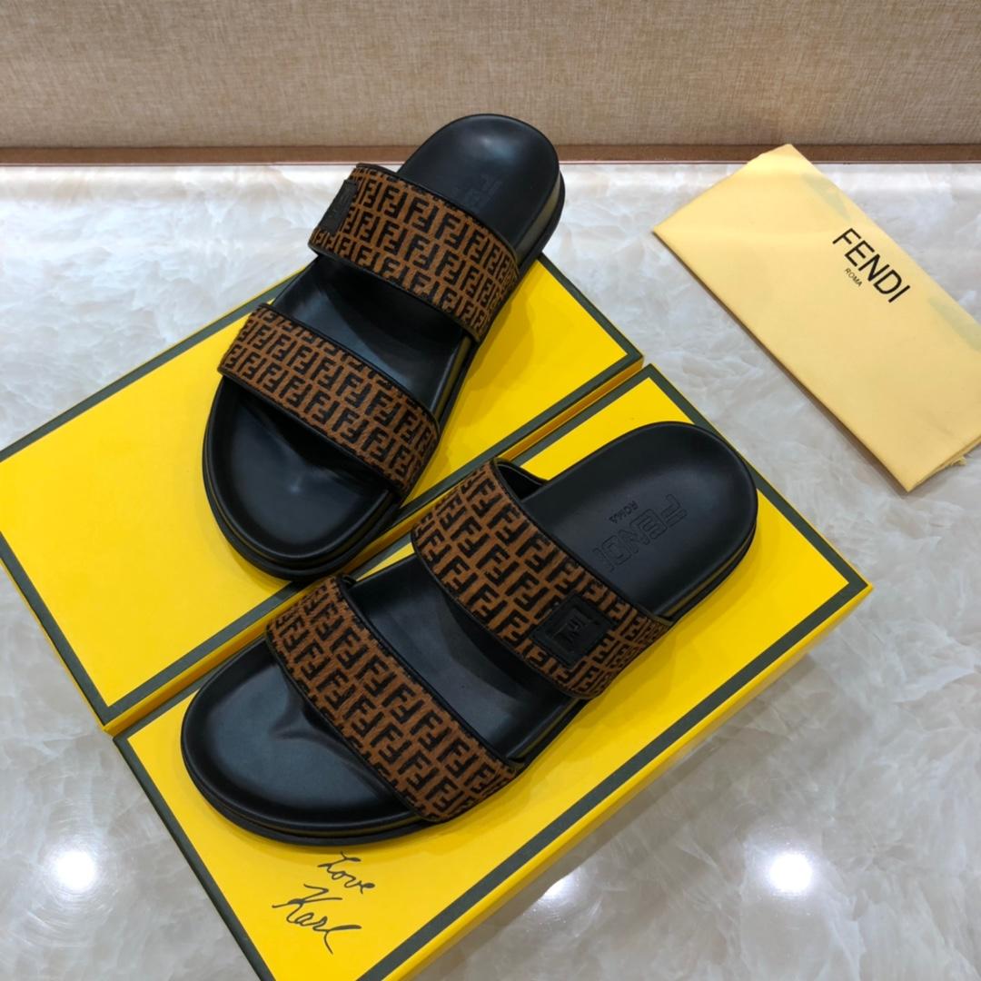 Replica Fendi black Slippers with brown canvas MS07238
