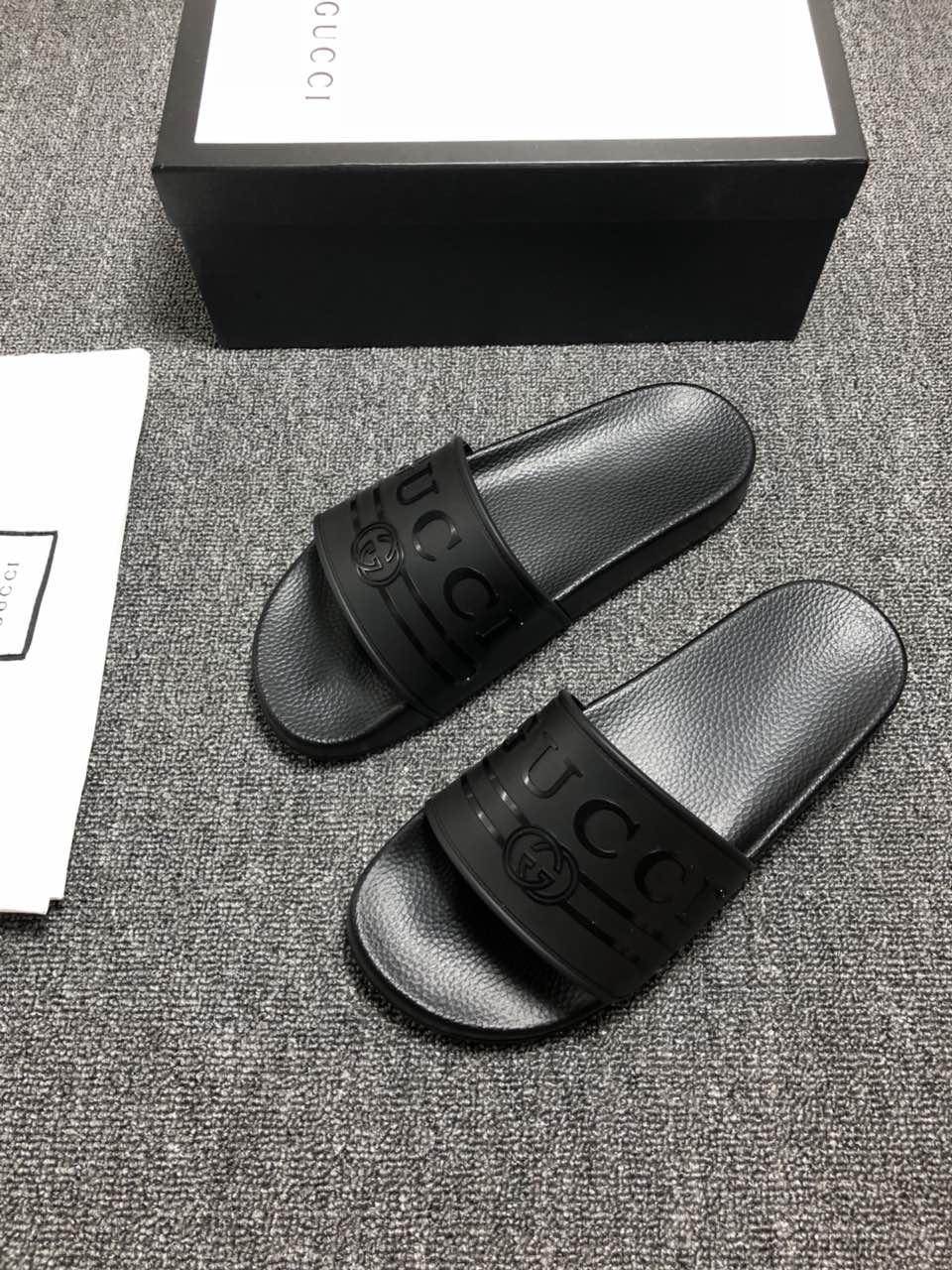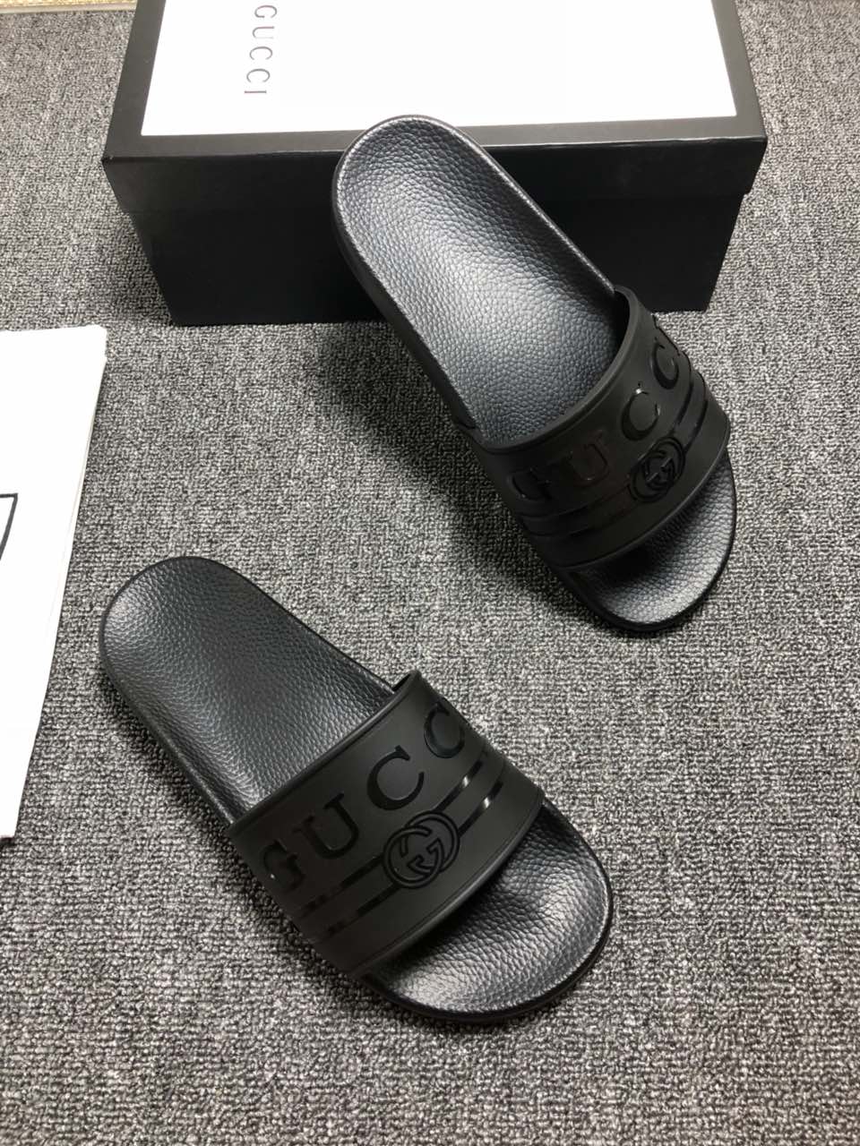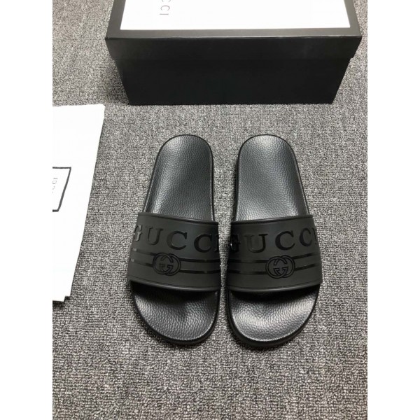 Replica High Quality Gucci Black slide sandal With Gucci rubber GO_GC035