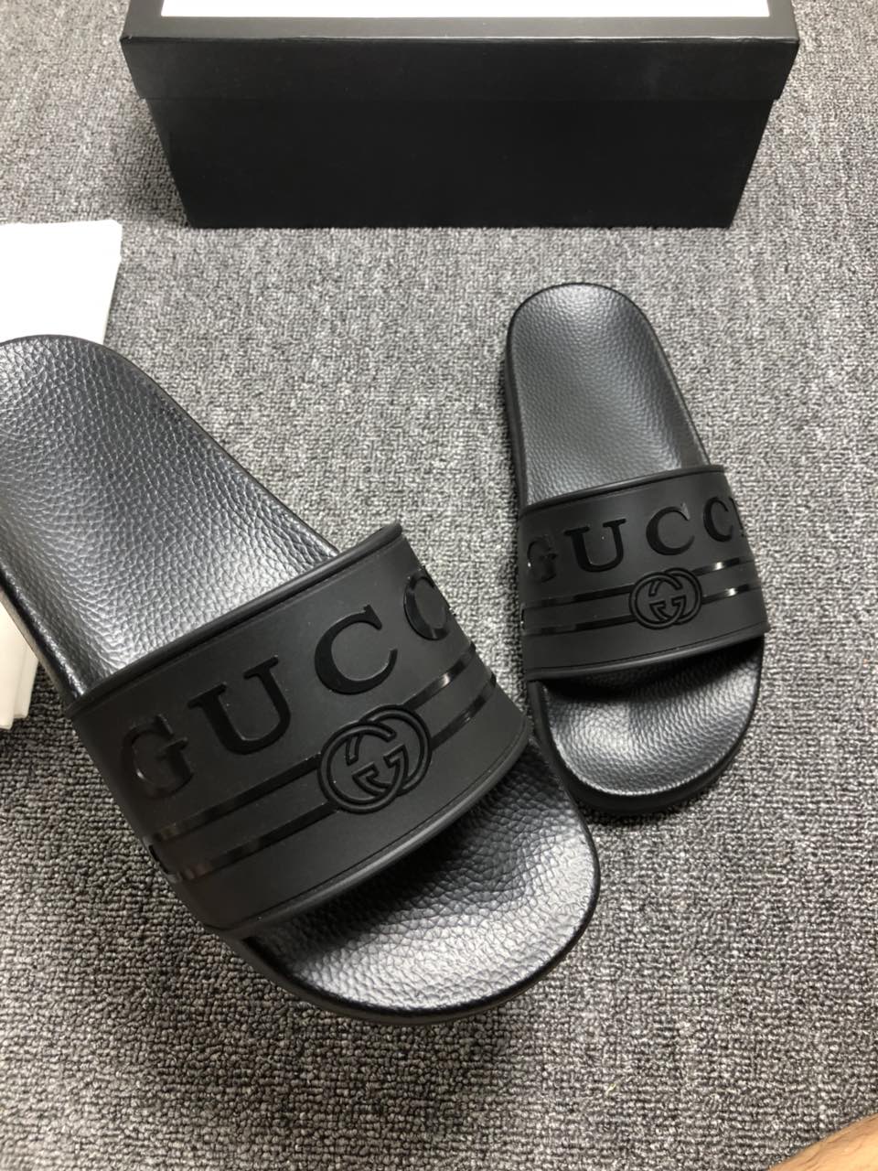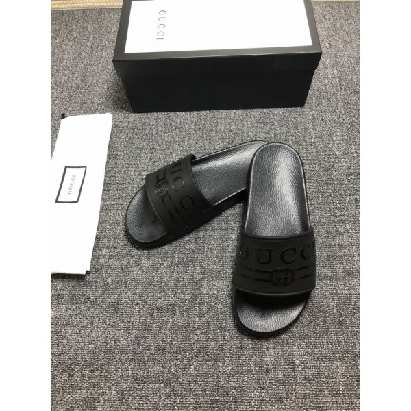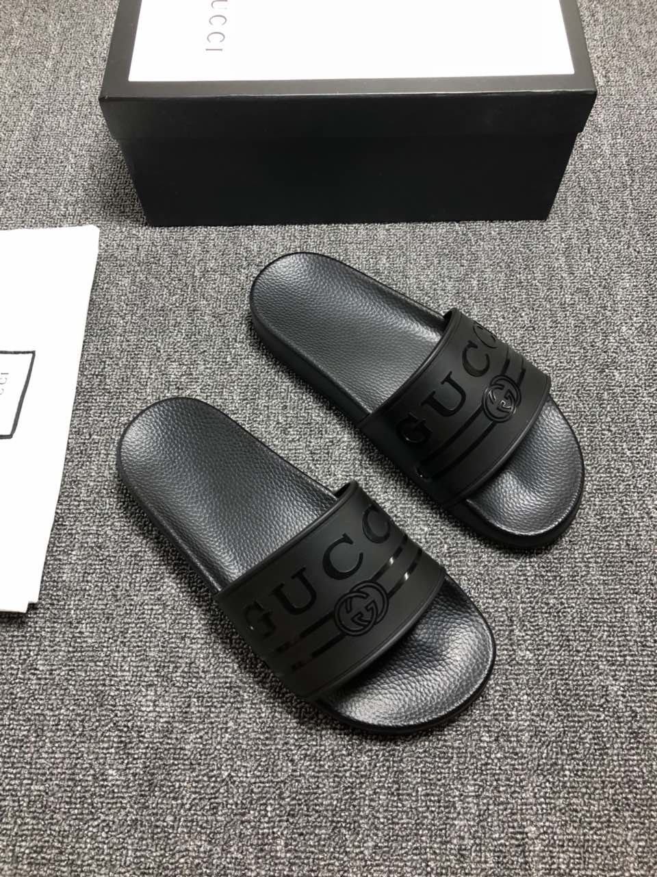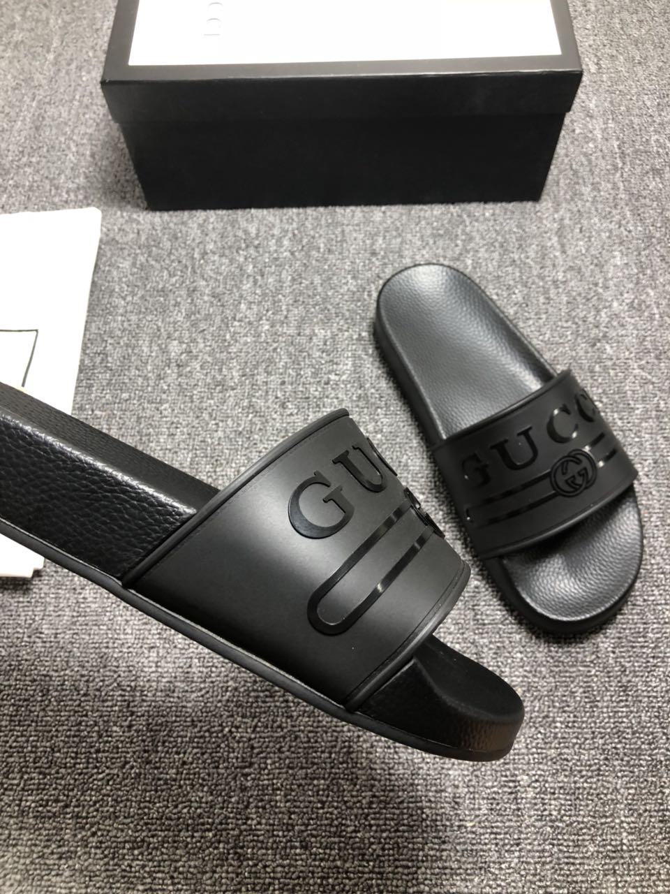 Replica High Quality Gucci Black slide sandal With Gucci rubber GO_GC035