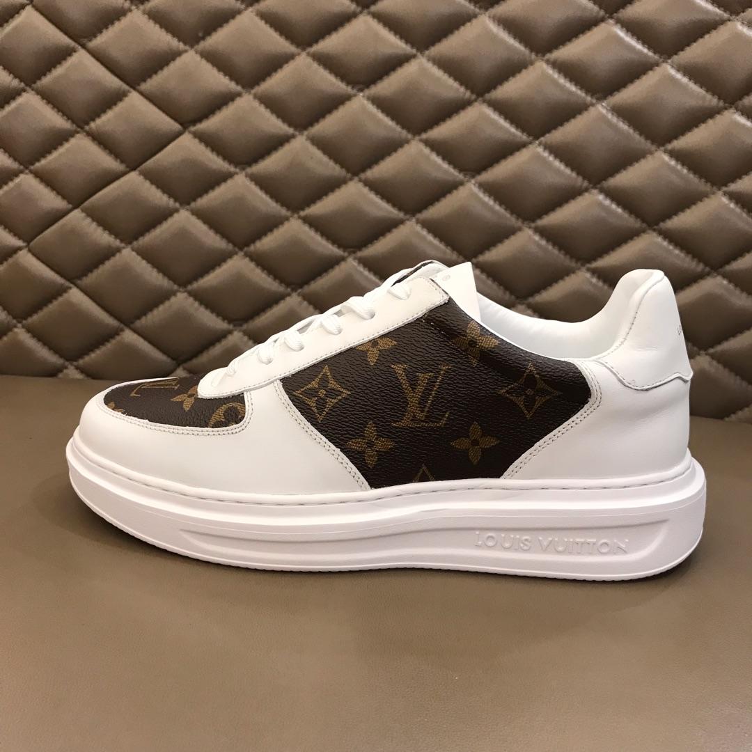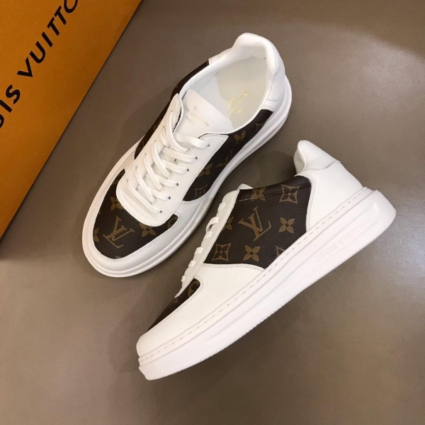 Replica Louis Vuitton Perfect Quality Sneakers White and brown Monogram print with white sole MS021026
