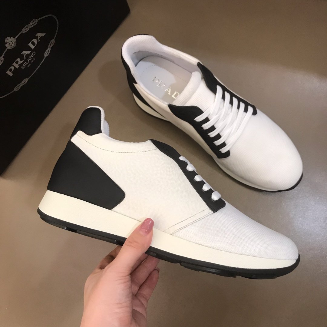 Replica Prada High Quality Sneakers White and black heel with white sole MS021121