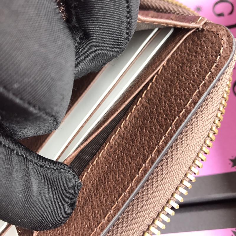 Replica Gucci Perfect Quality brown zipped wallet with red and green decorations GC07WM017