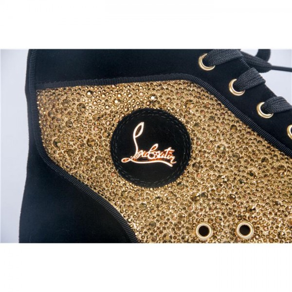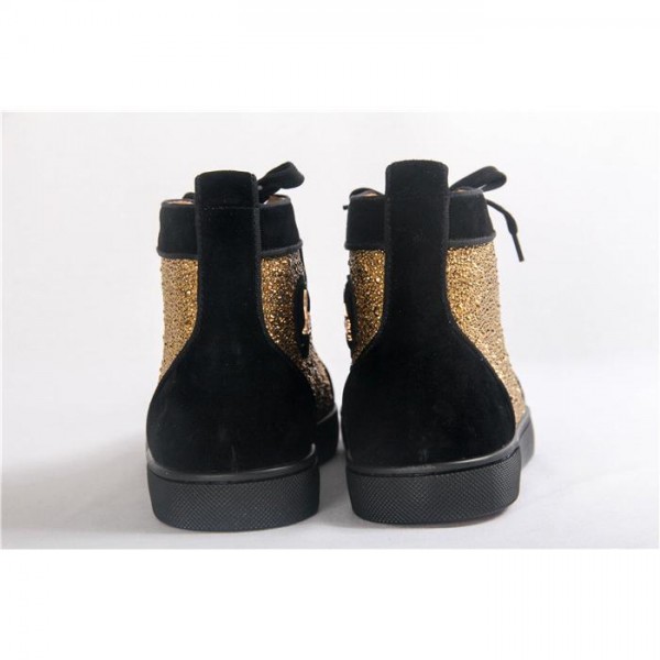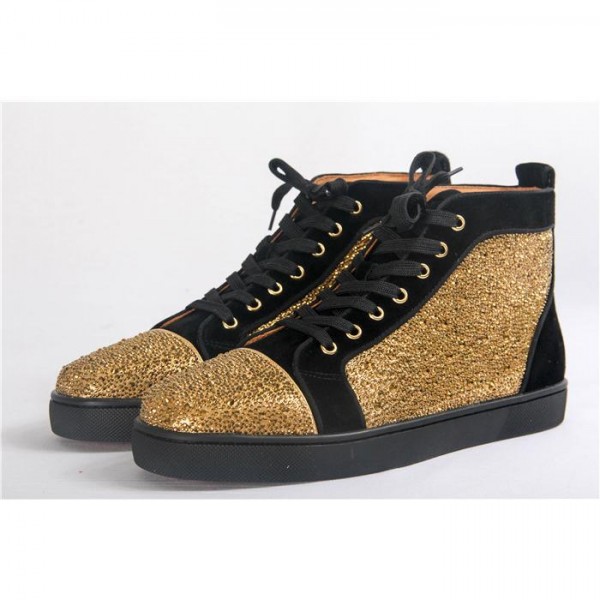 Replica High Quality Christian Louboutin Gold Louis Strass Men'S Flat In Smooth Black Suede