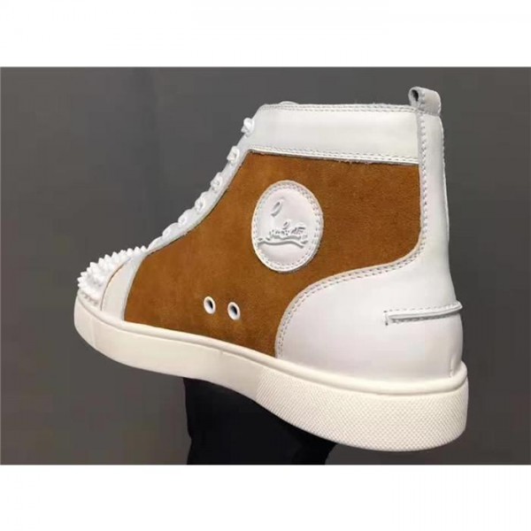 Replica High Quality Christian Louboutin Lou Spikes Flat Latte Calf Sneakers