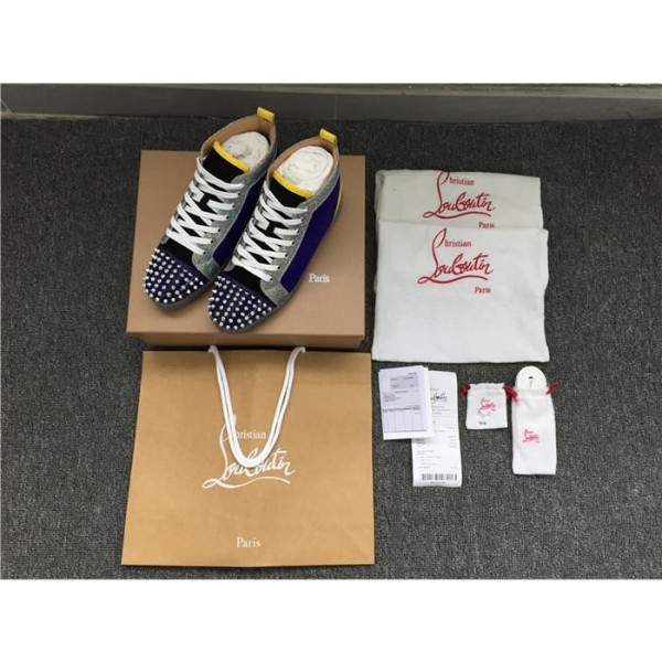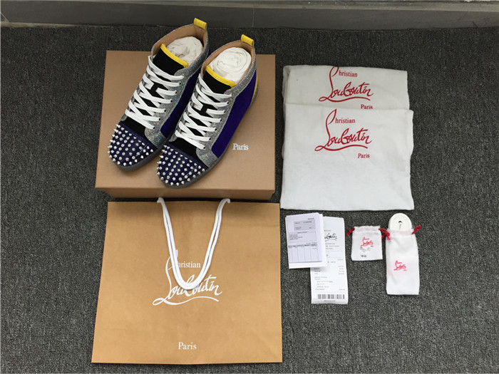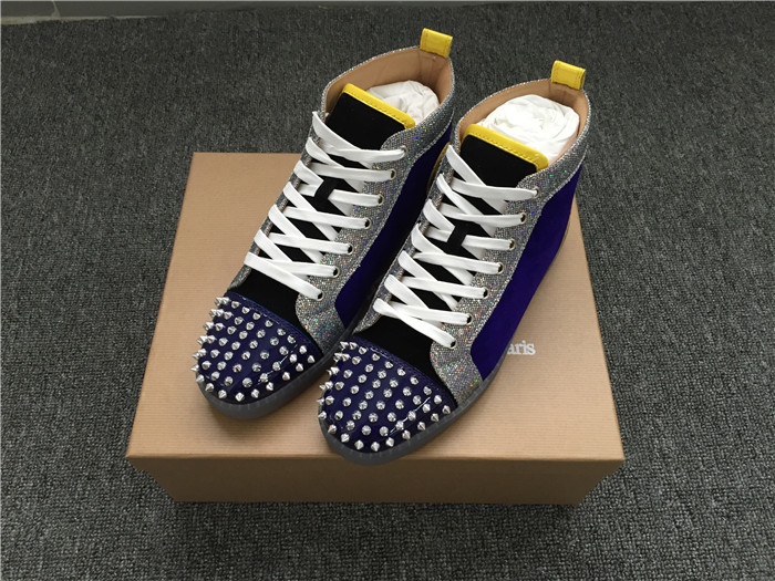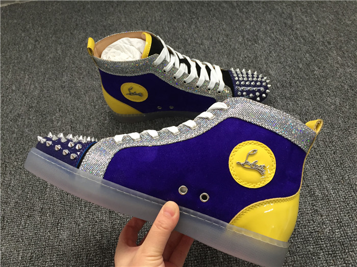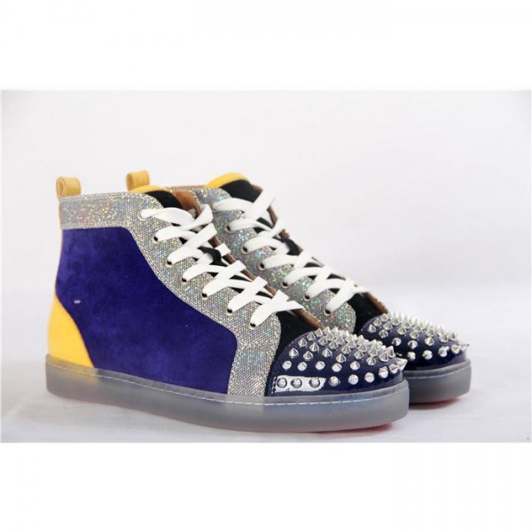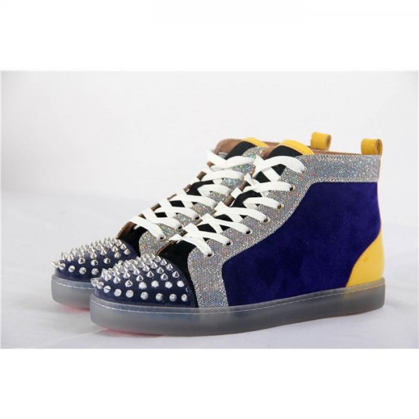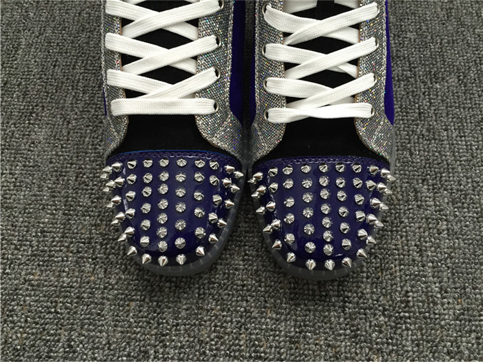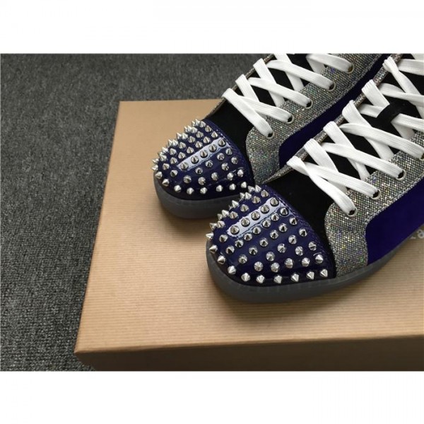 Replica High Quality Christian Louboutin Lou Spikes Glitter Disco Ball High-Top Sneaker