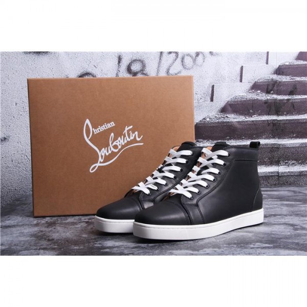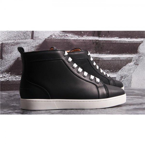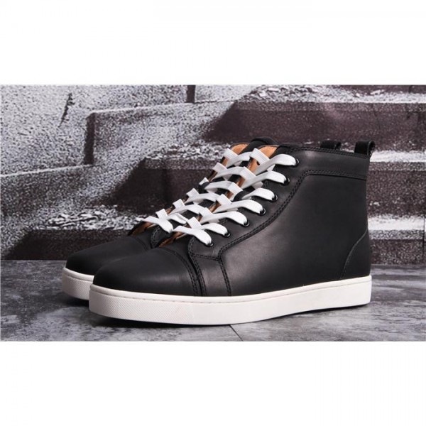 Replica High Quality Christian Louboutin Louis Flat Mens High Top Leather Sneakers Black