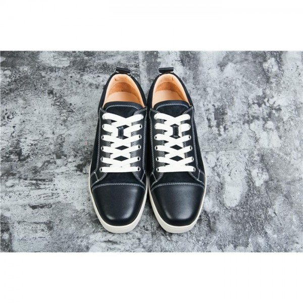 Replica High Quality Christian Louboutin Louis Junior Men'S Flat Navy Suede Leather Blend Sneakers