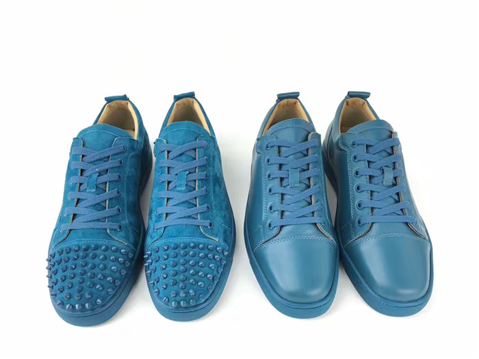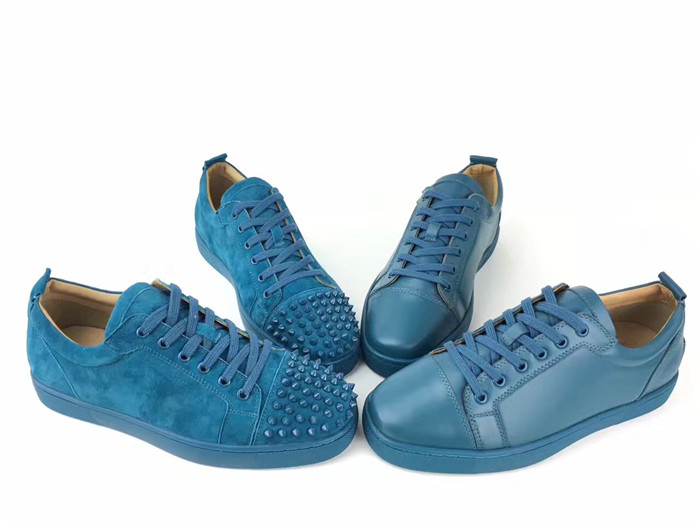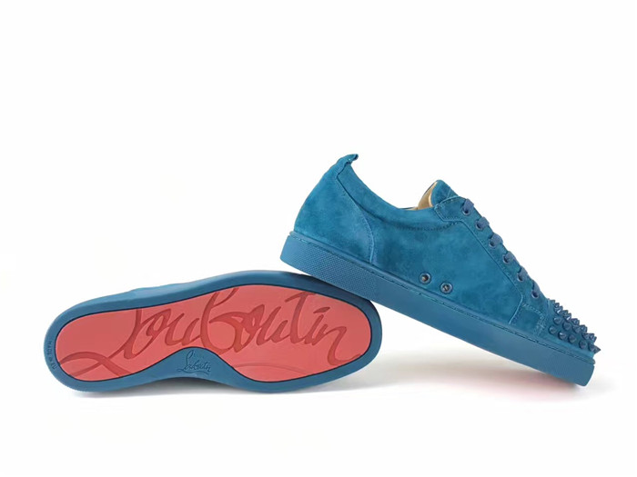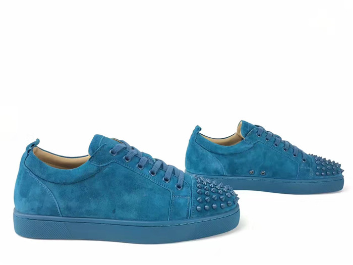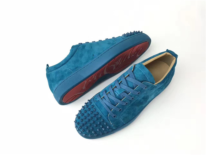 Super Perfect Christian Louboutin Louis Junior Spikes Flat Blue Suede Sneakers