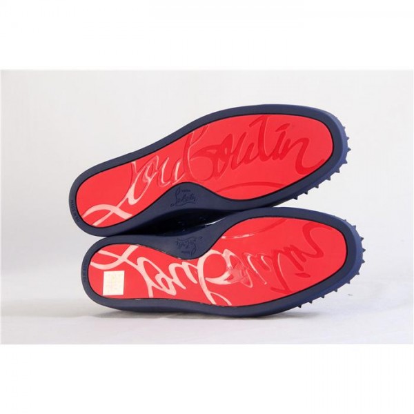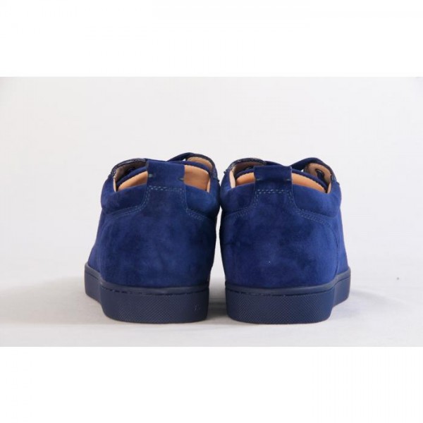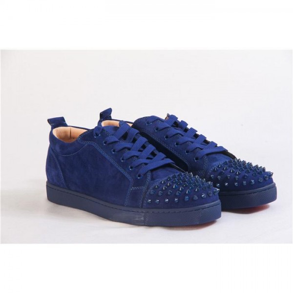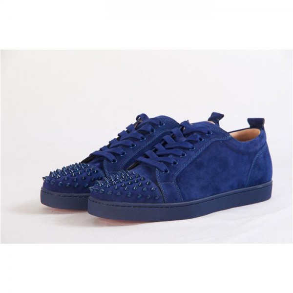 Replica High Quality Christian Louboutin Louis Junior Spikes Men'S Flat Low Top Suede Blue Sneakers