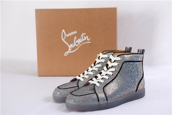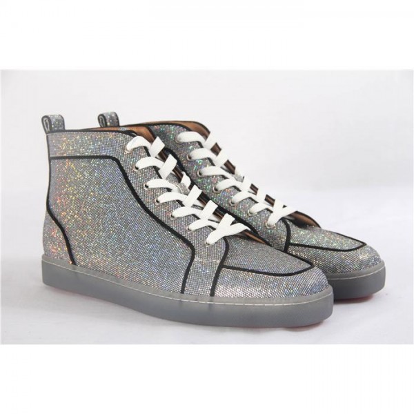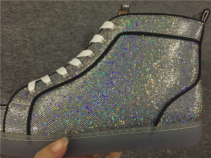 Replica High Quality Christian Louboutin Mens High Top Rantus Orlato Glitter Disco Ball Glitter Sneaker