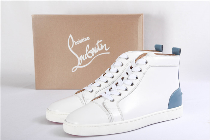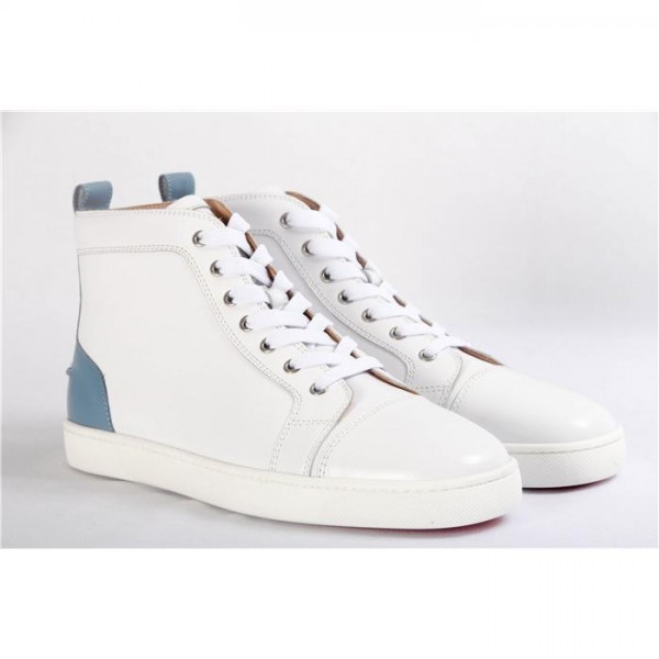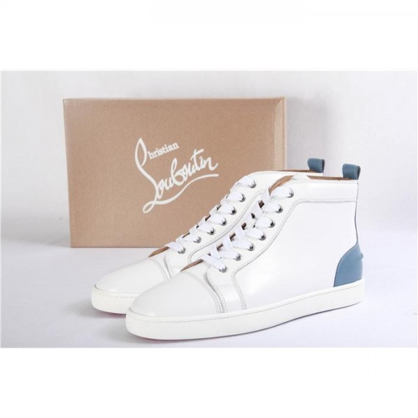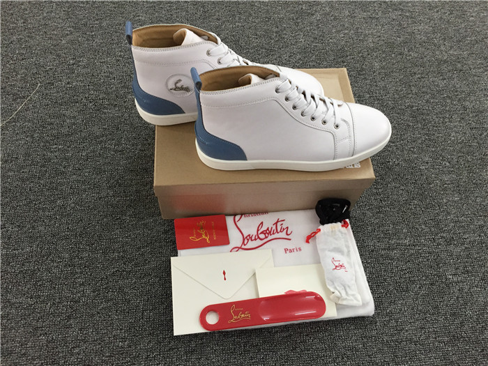Super Perfect Christian Louboutin Mens High Top White and Blue Sneaker