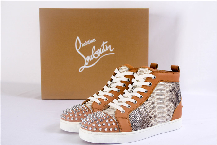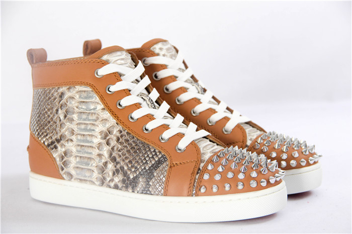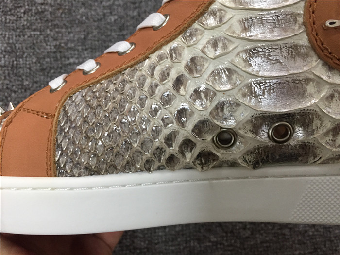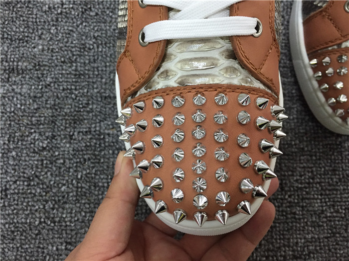 Replica High Quality Christian Louboutin Real Python Rantus Orlanto Sneakers With Silver Spikes