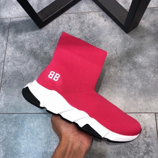 Replica Balenciaga Speed Trainer Pink and white BB print with white rubber sole WS980019