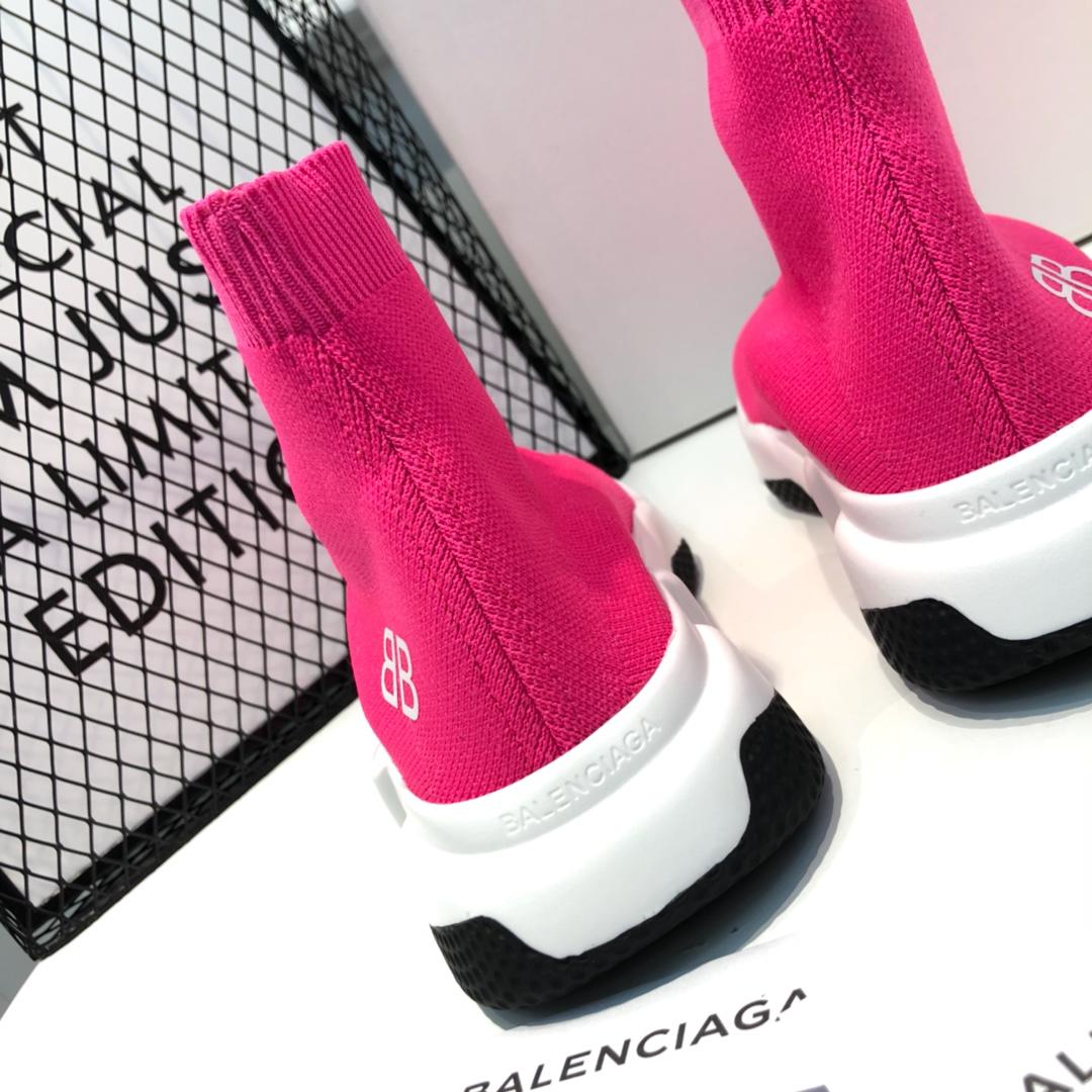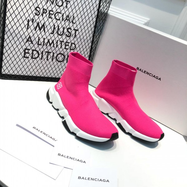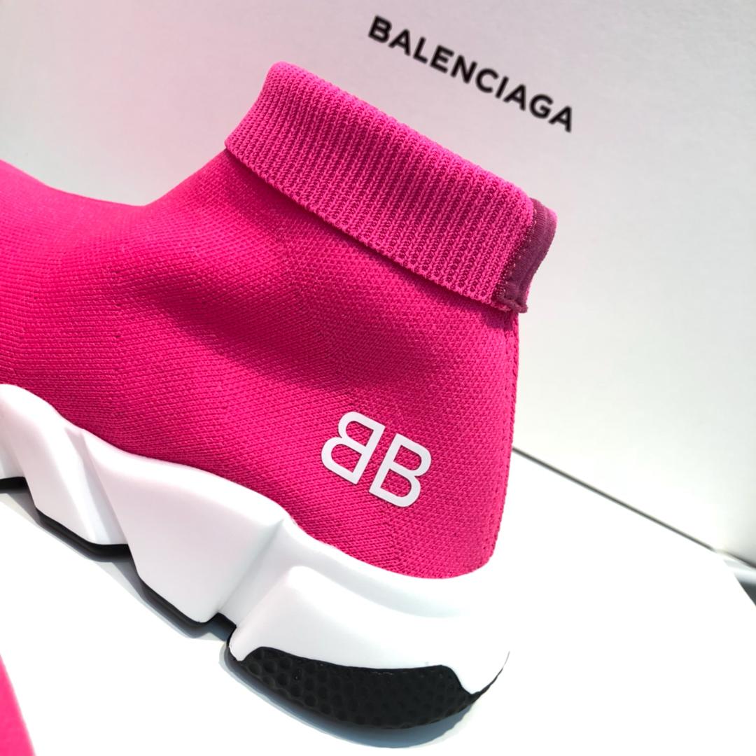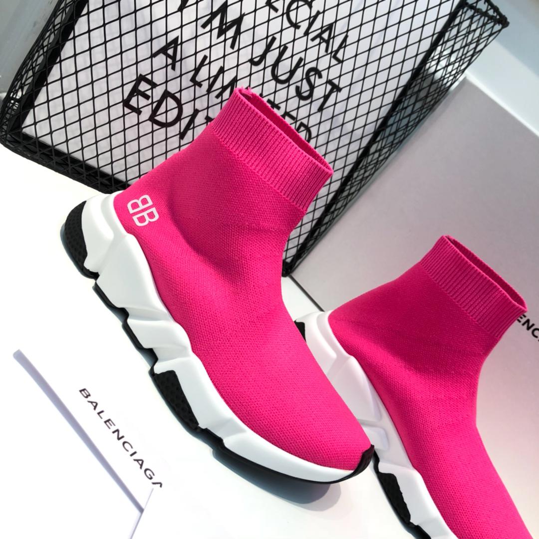 Replica Balenciaga Speed Trainers Pink and white BB print and white rubber sole Sneaker MS09077