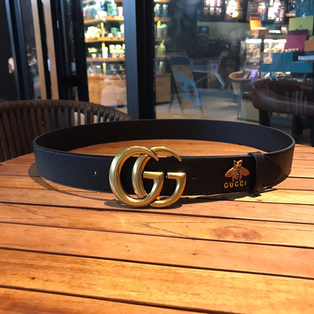 Replica Gucci Black leather Double G Gold belt ASS02424