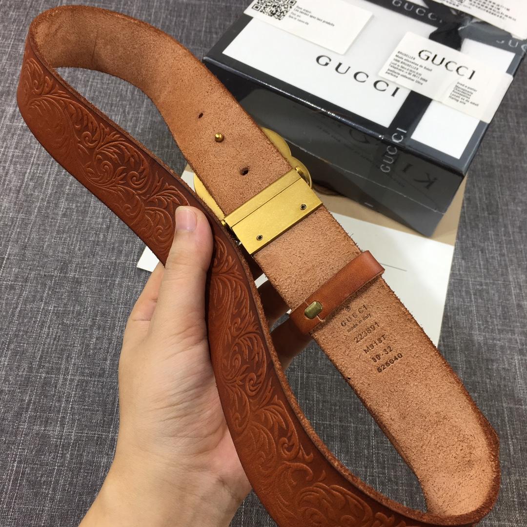Replica Gucci Gold Double G Brown Leather belt ASS02419