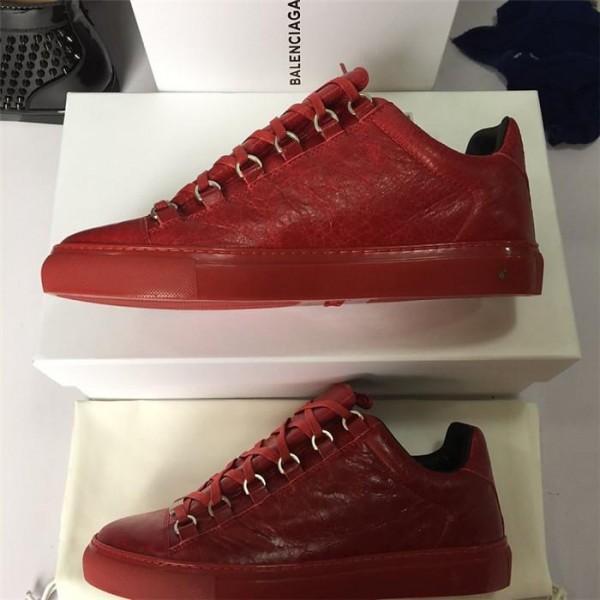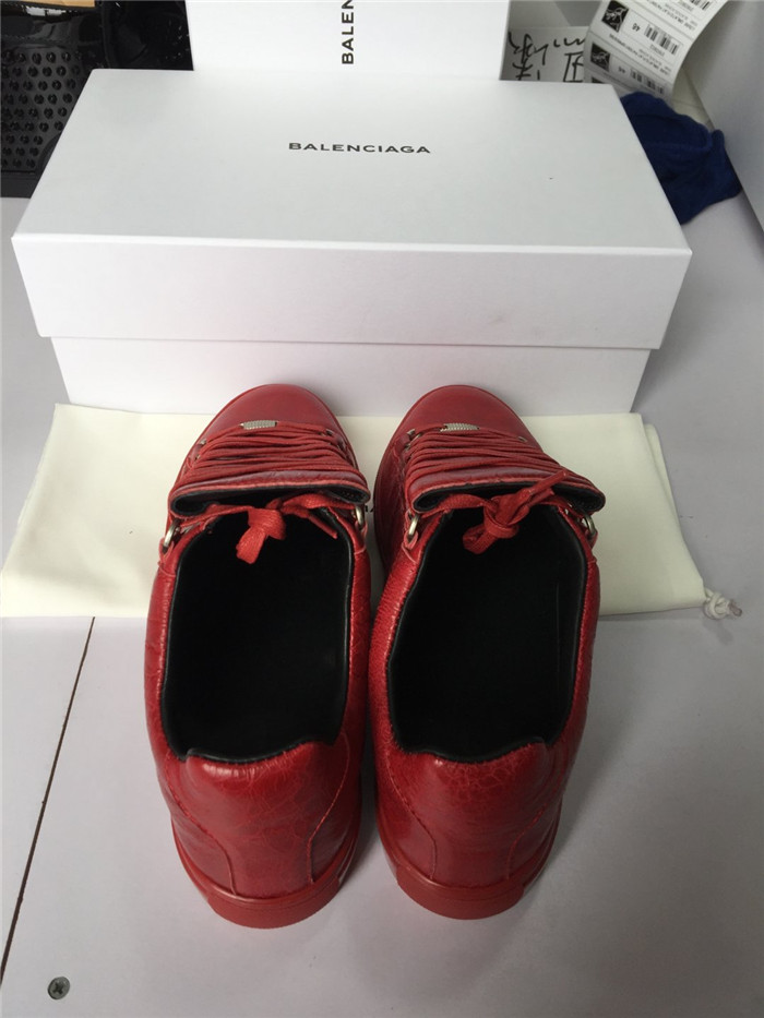 Replica High Quality Black Insole New Balenciaga Arena Red Low Top Creased Leather Sneakers