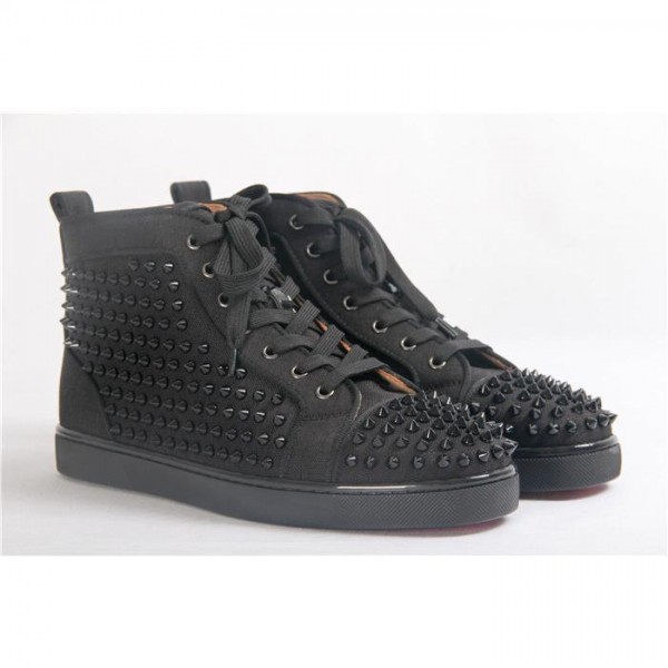 Replica High Quality Christian Louboutin Black Louis Spikes Orlato Men'S Flat Sneakers
