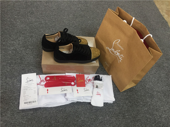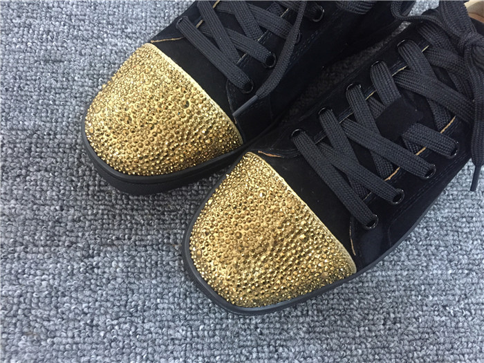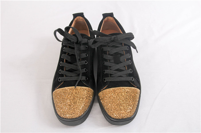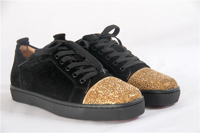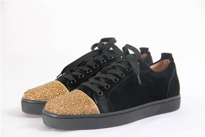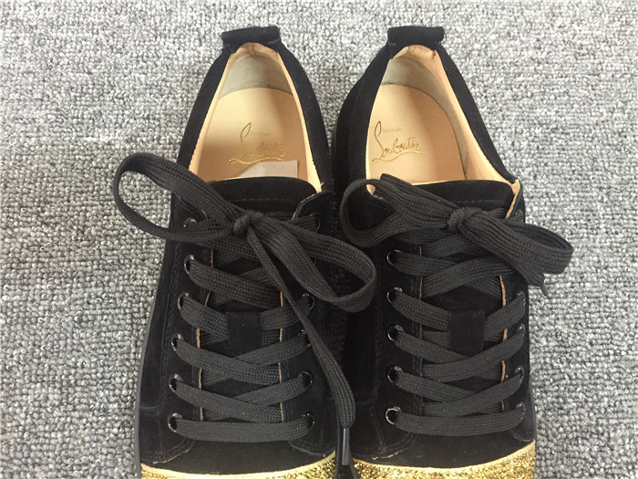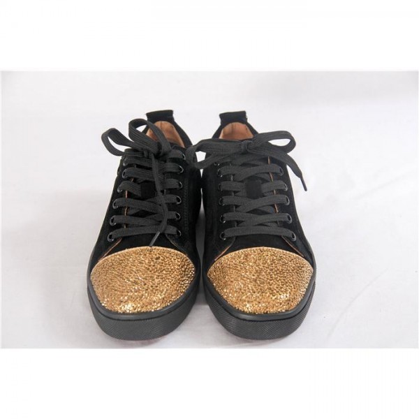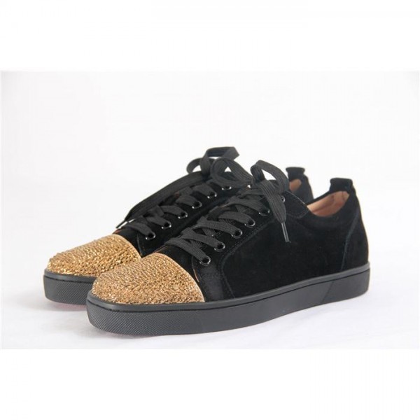 Replica High Quality Christian Louboutin Black Low Top Suede Gold Sneakers For Men