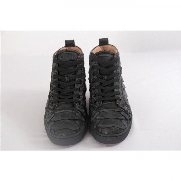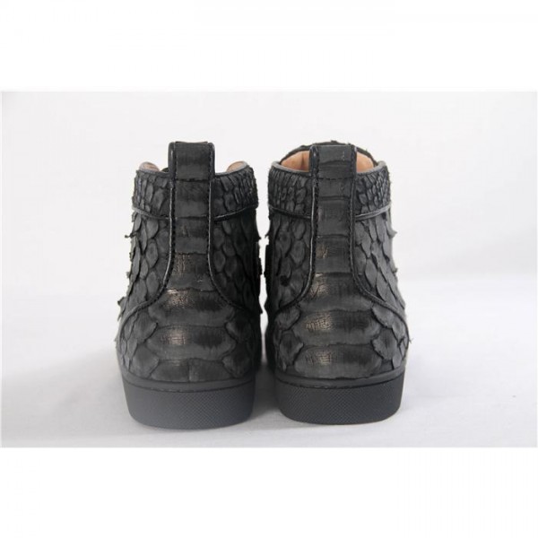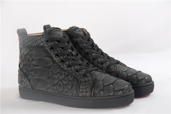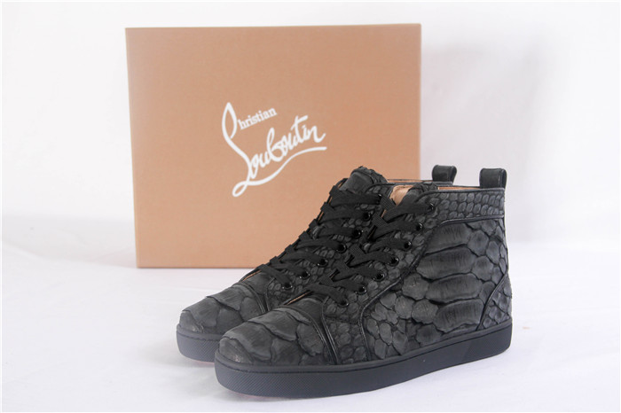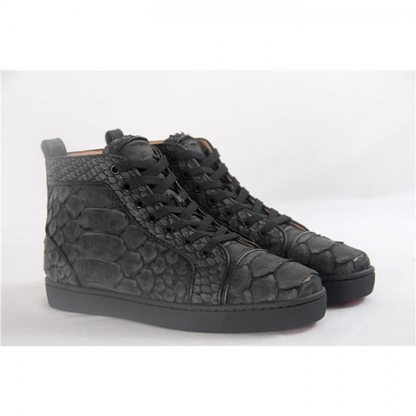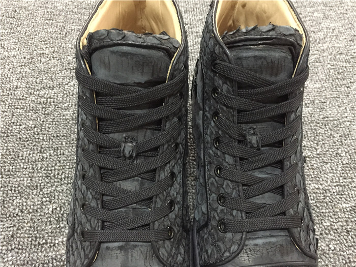 Replica High Quality Christian Louboutin Black Python Louis Flat Sneakers