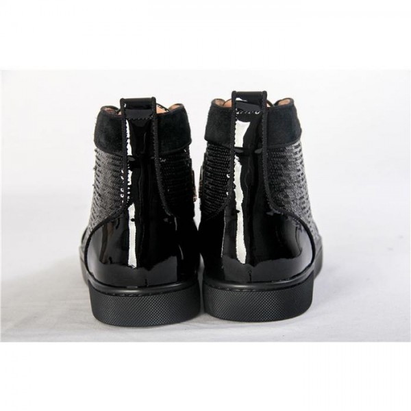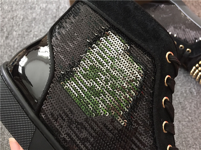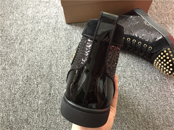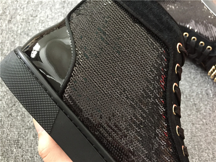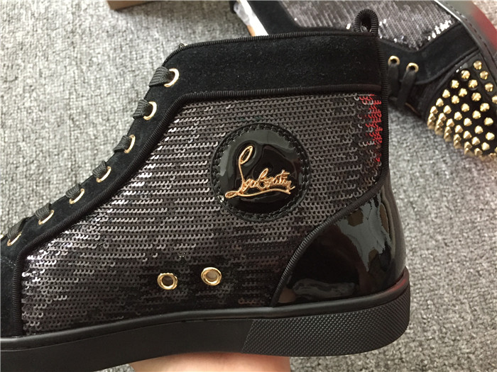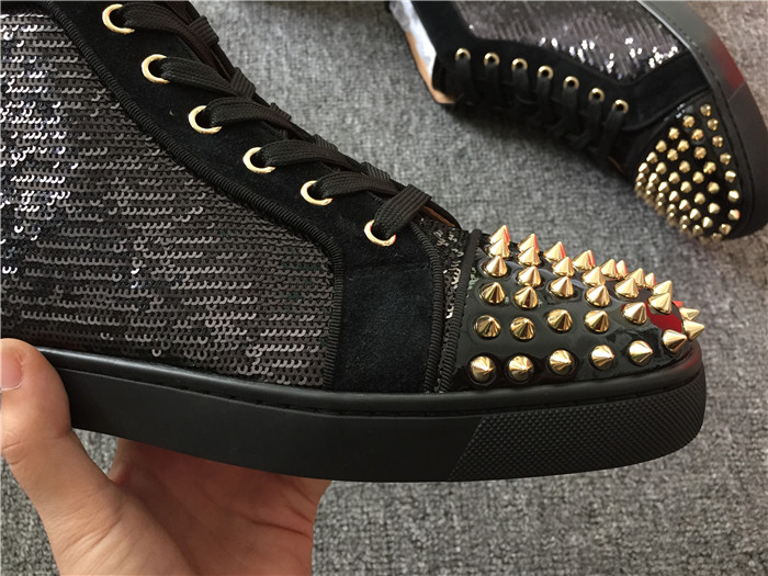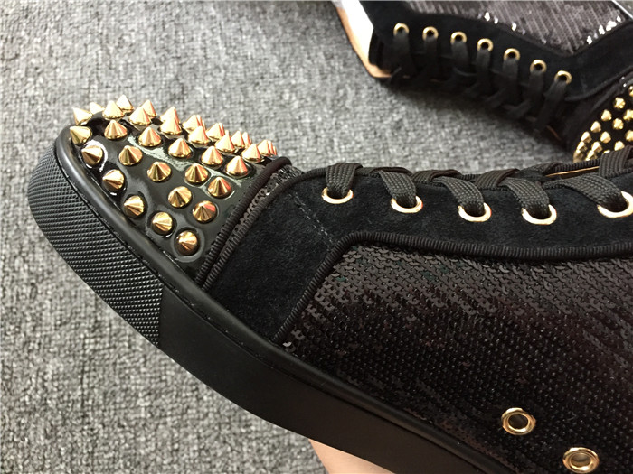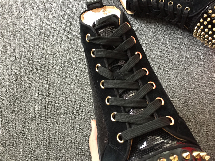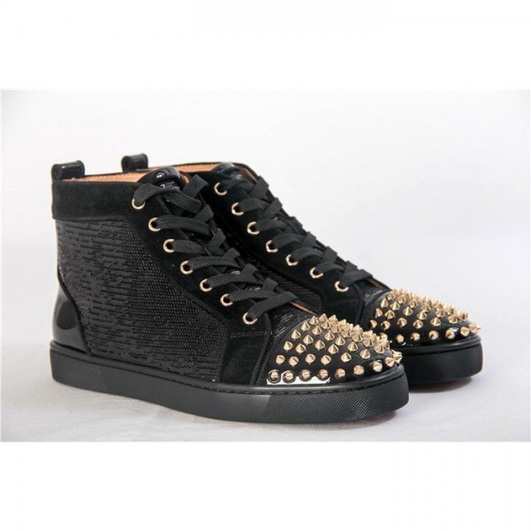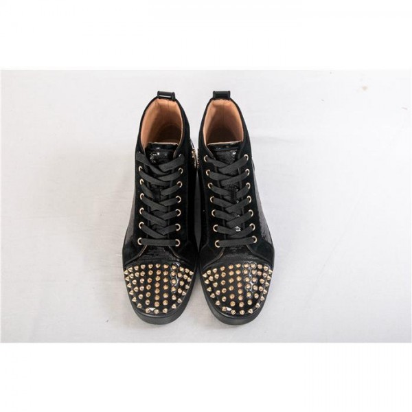 Replica High Quality Christian Louboutin Flat Black Gold Spike High Top Sneakers