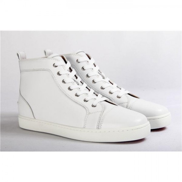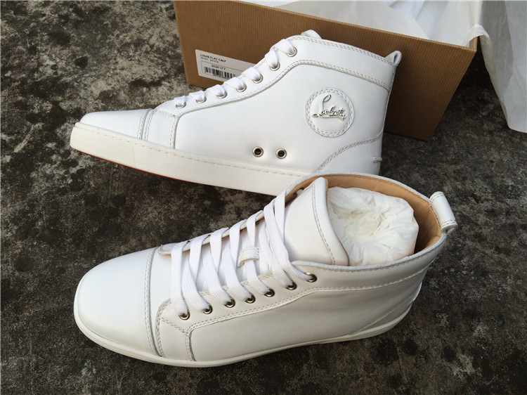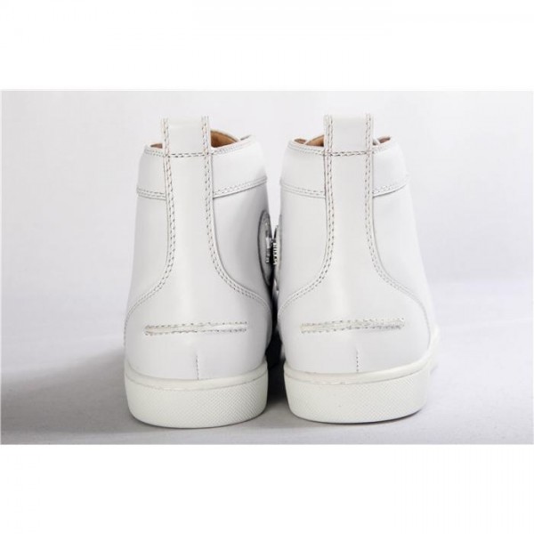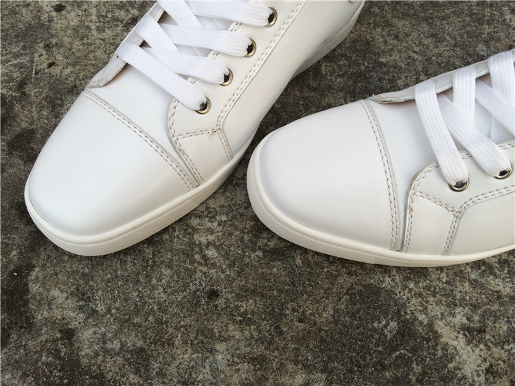 Replica High Quality Christian Louboutin Louis Spike Men Flat High Top White Sneaker Glossy Red Sole