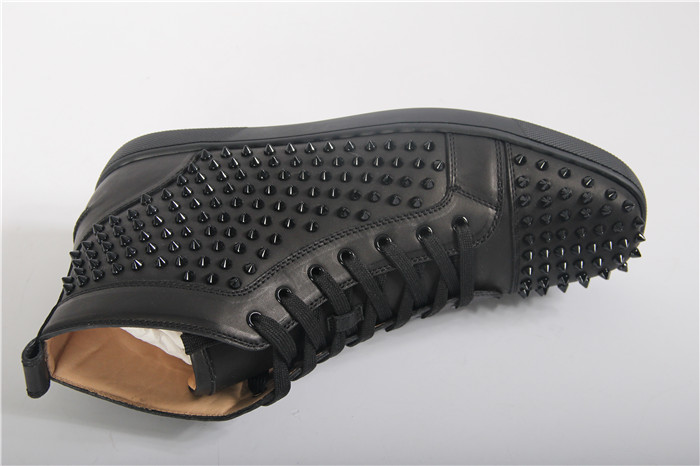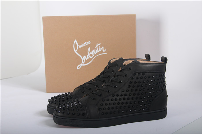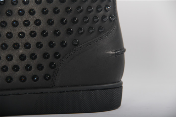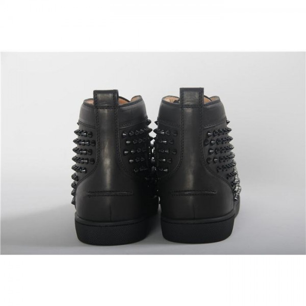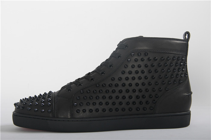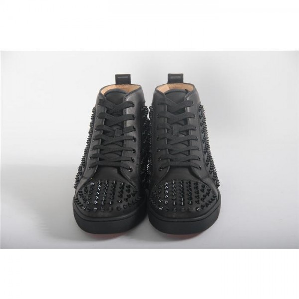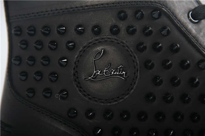 Replica High Quality Christian Louboutin Louis Spike Men'S Flat High Top Black Sneaker Glossy Red Sole