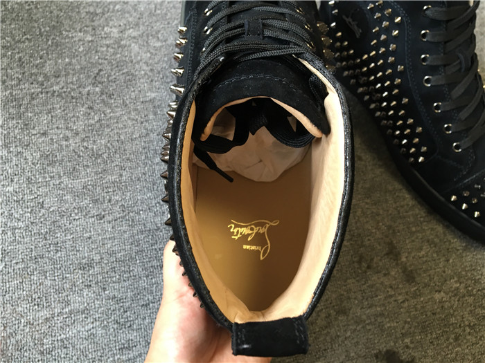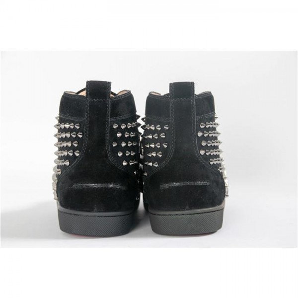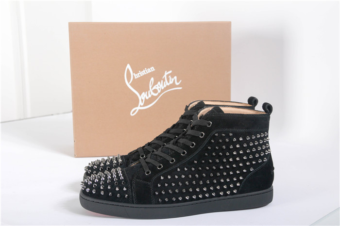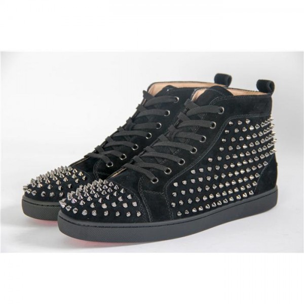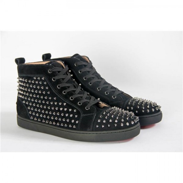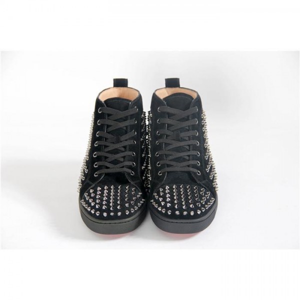Replica High Quality Christian Louboutin Louis Spikes Men'S Flat Black Dk Bk Black Mens Sneakers