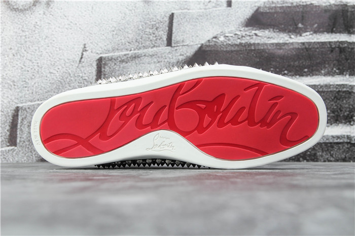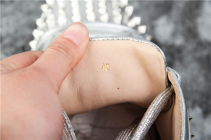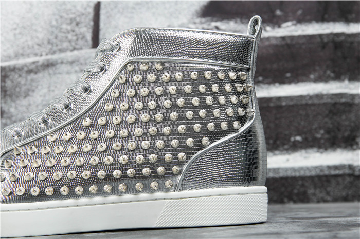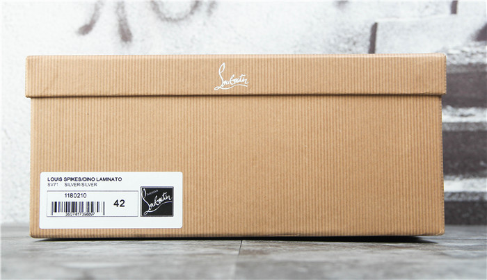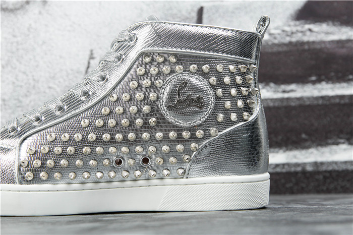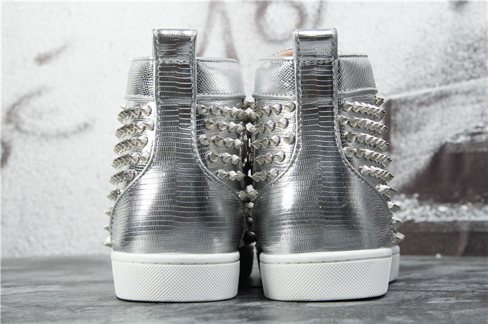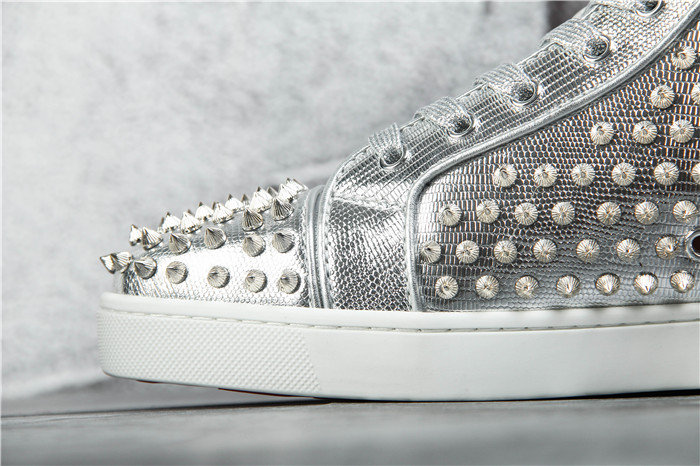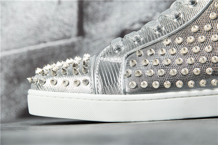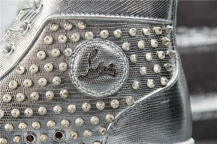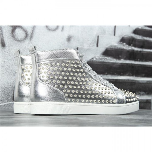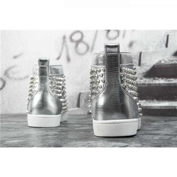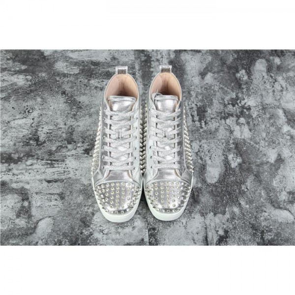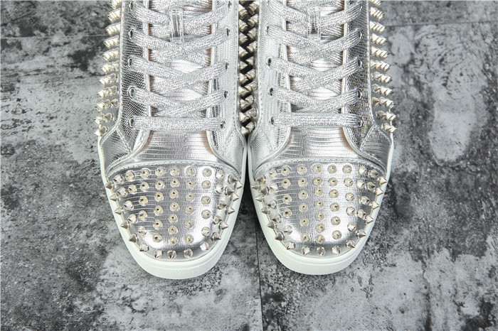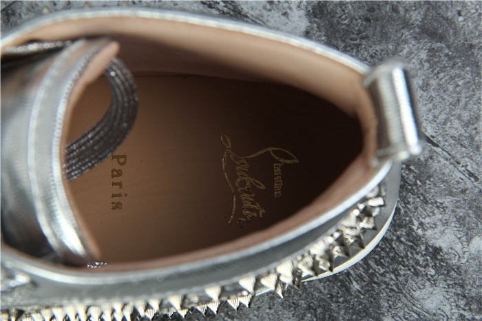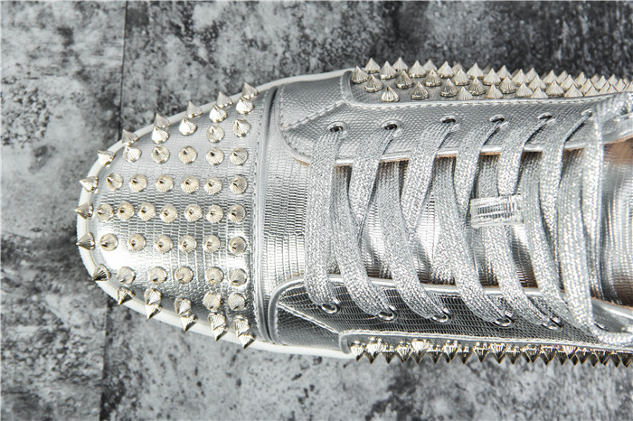 Replica High Quality Christian Louboutin Louis Spikes Men'S Flat Silver Leather Sneakers
