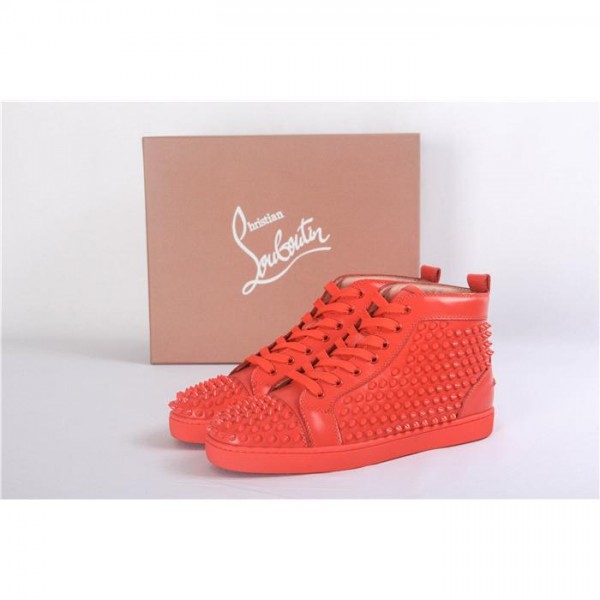 Replica High Quality Christian Louboutin Red Louis Spikes Flat High-Top Men Sneakers