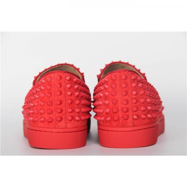 Replica High Quality Christian Louboutin Roller-Boat Spikes Men'S Flat In Red Suede