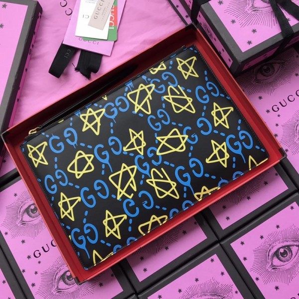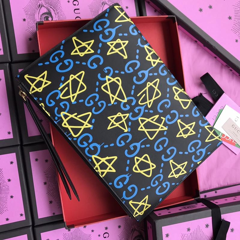 Replica Gucci Perfect Quality black leather purse with yellow and blue decorations GC07WM054