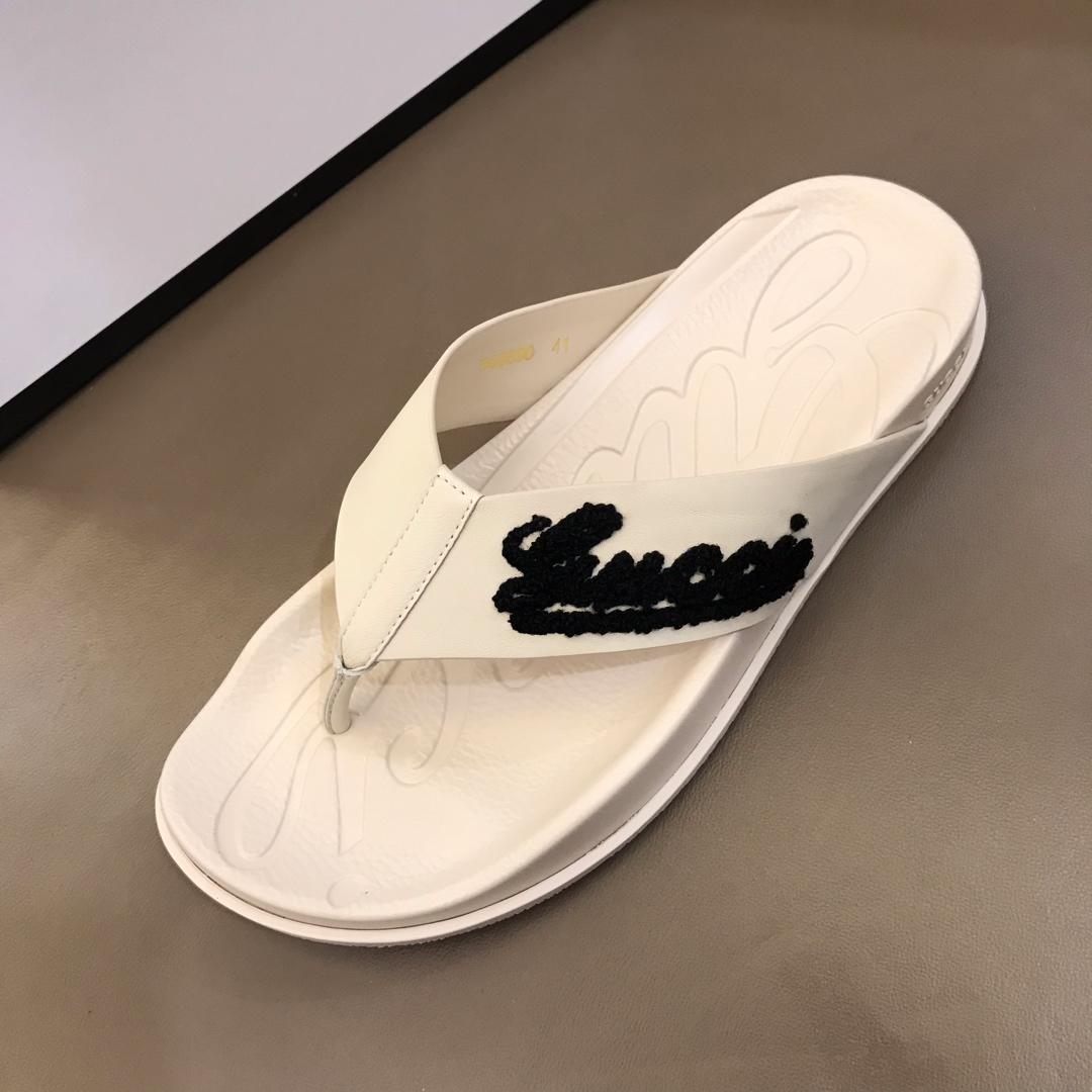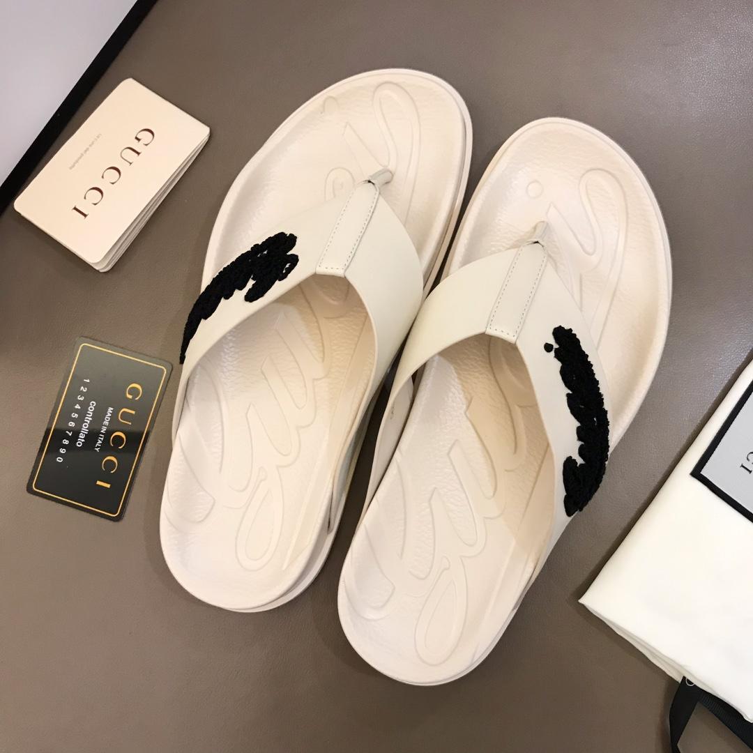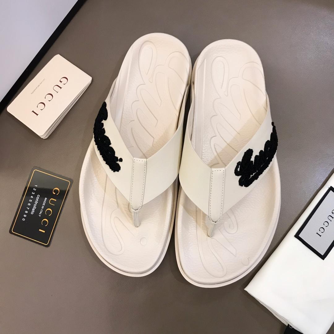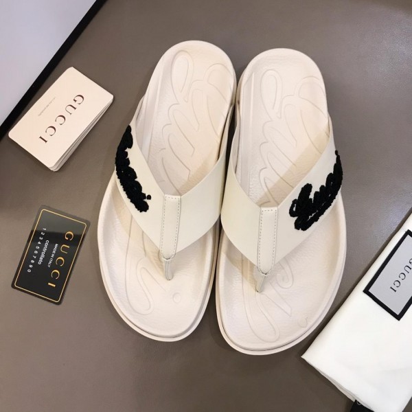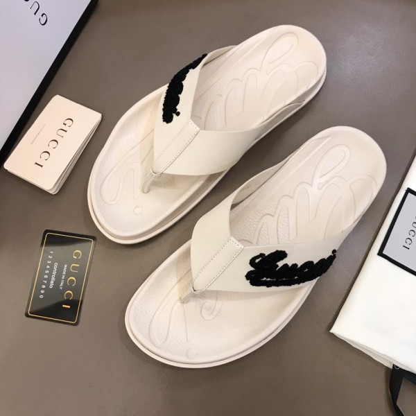 Replica Gucci white Slippers with black gucci design MS02664