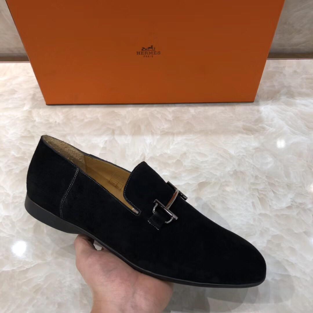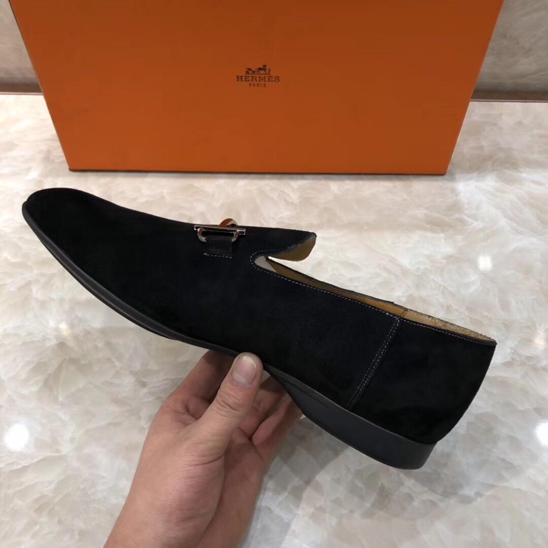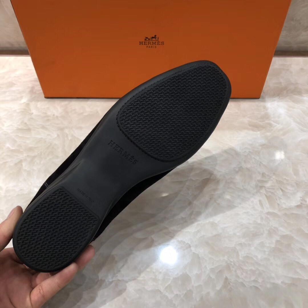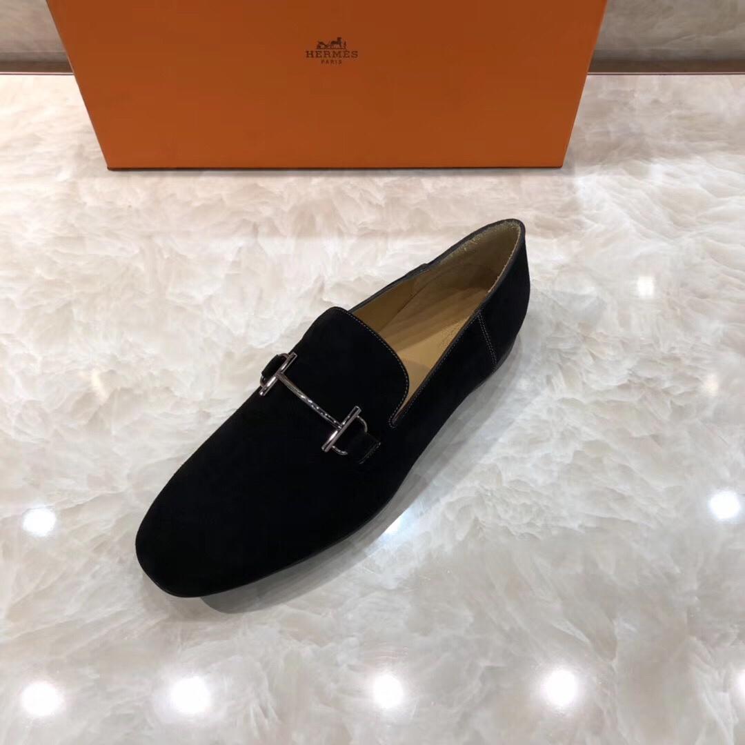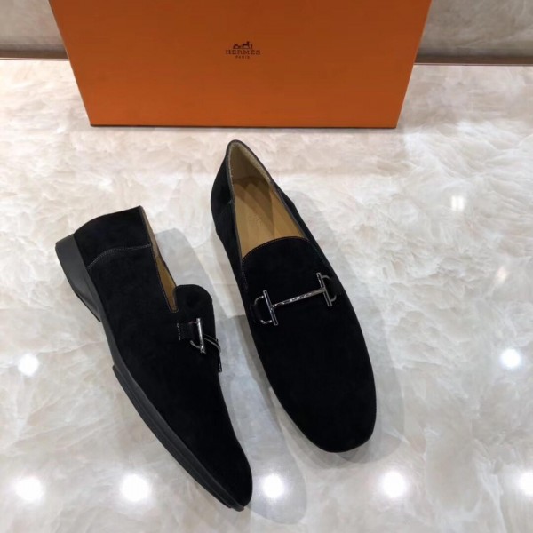 Replica Hermes Black Suede leather Perfect Quality Loafers With Silver Buckle MS07791