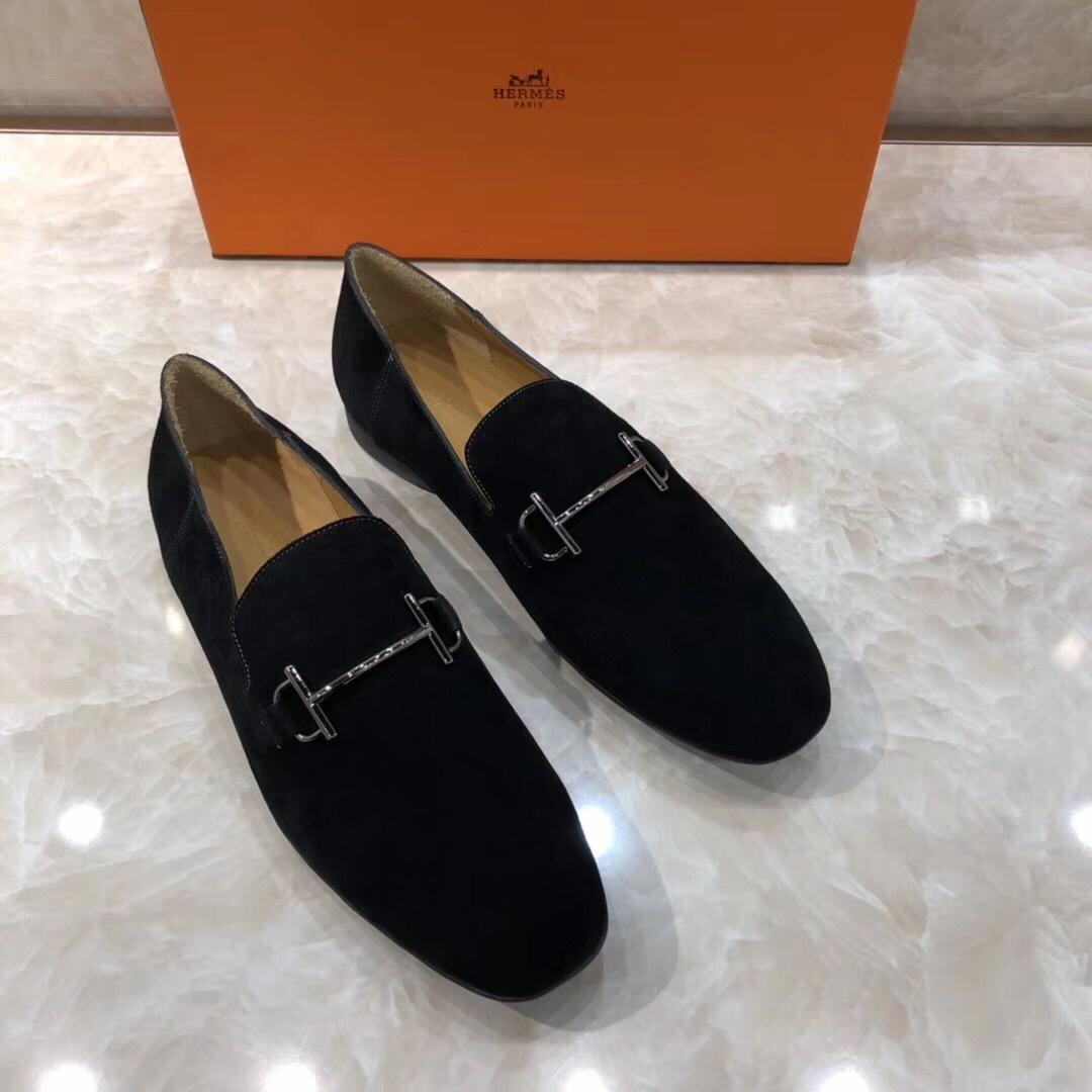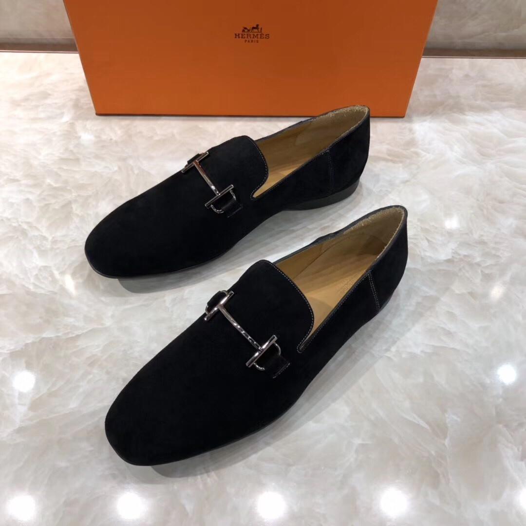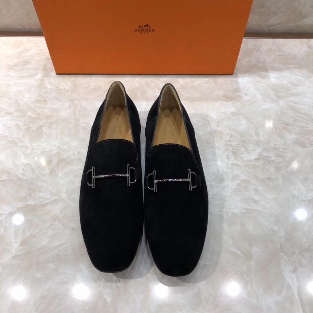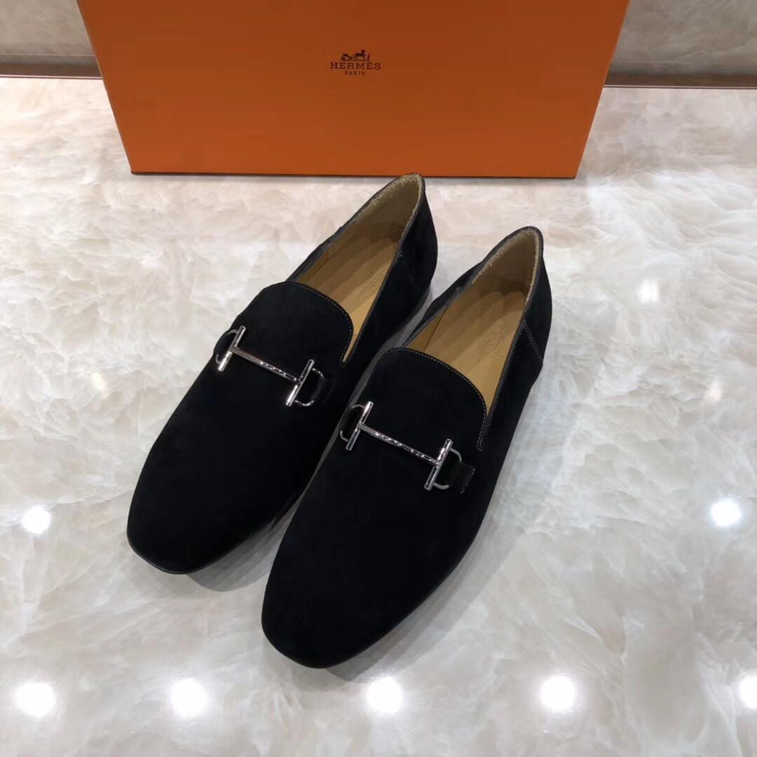 Replica Hermes Black Suede leather Perfect Quality Loafers With Silver Buckle MS07791