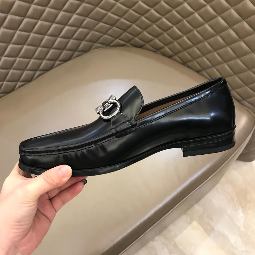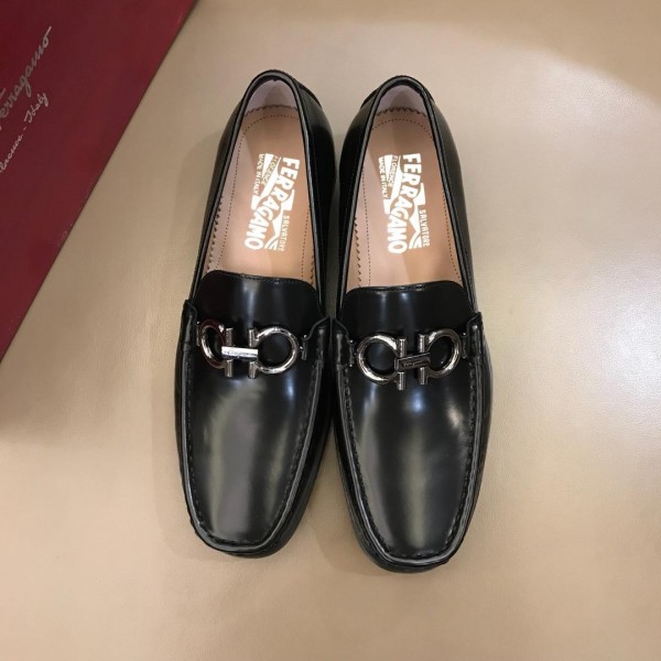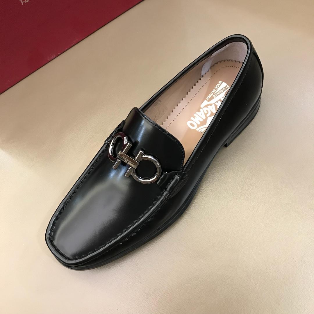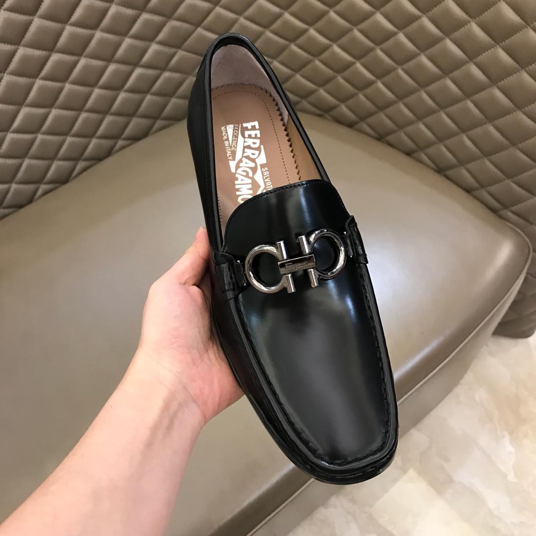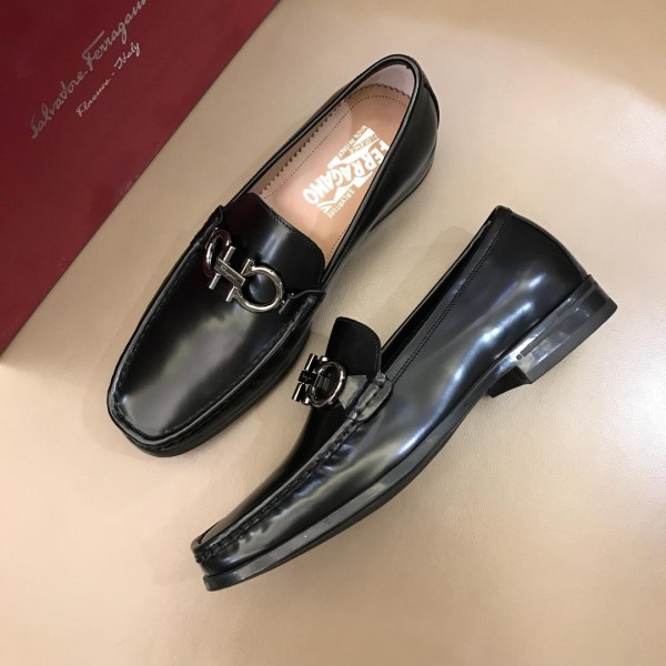 Replica Salvatore Ferragamo Black Bright leather Fashion Perfect Quality Loafers With Sliver Buckle MS02975