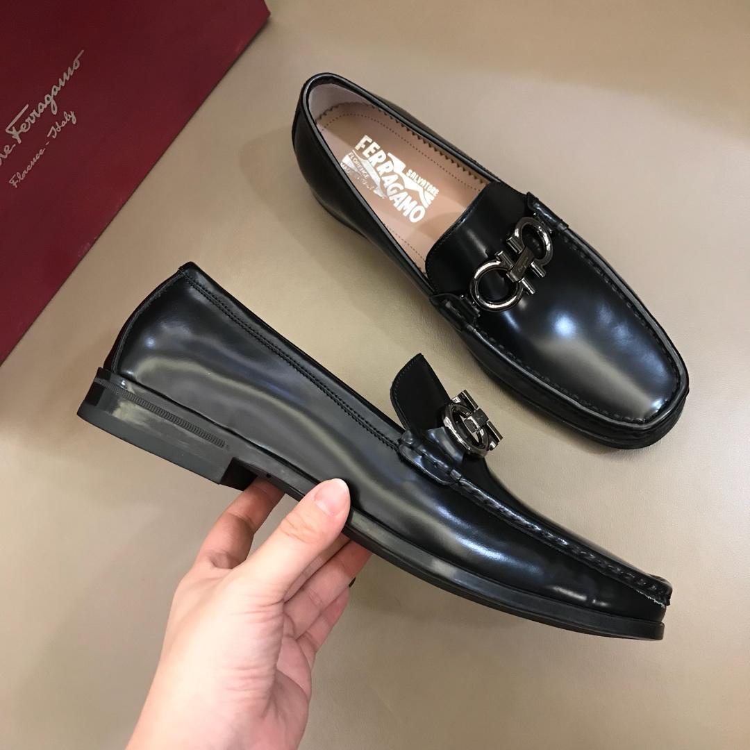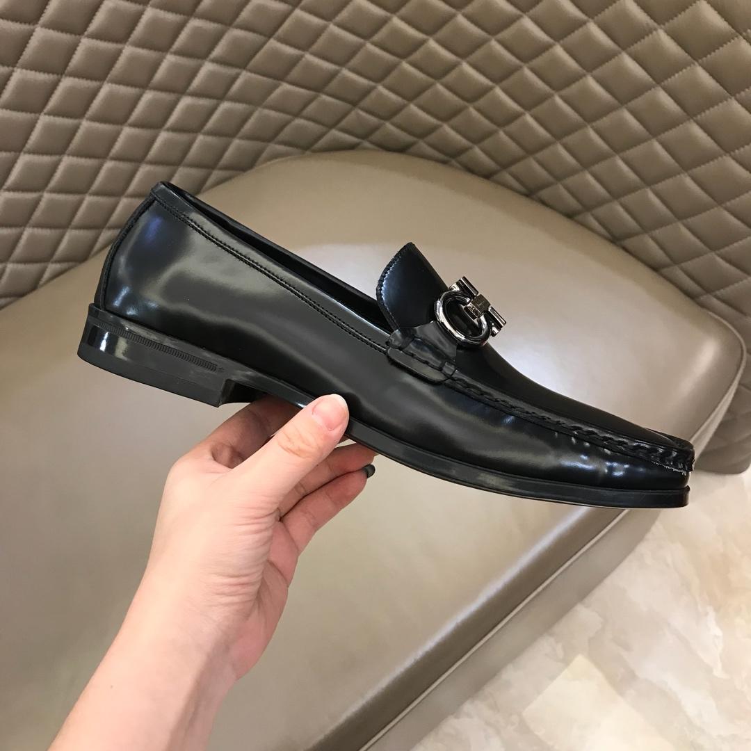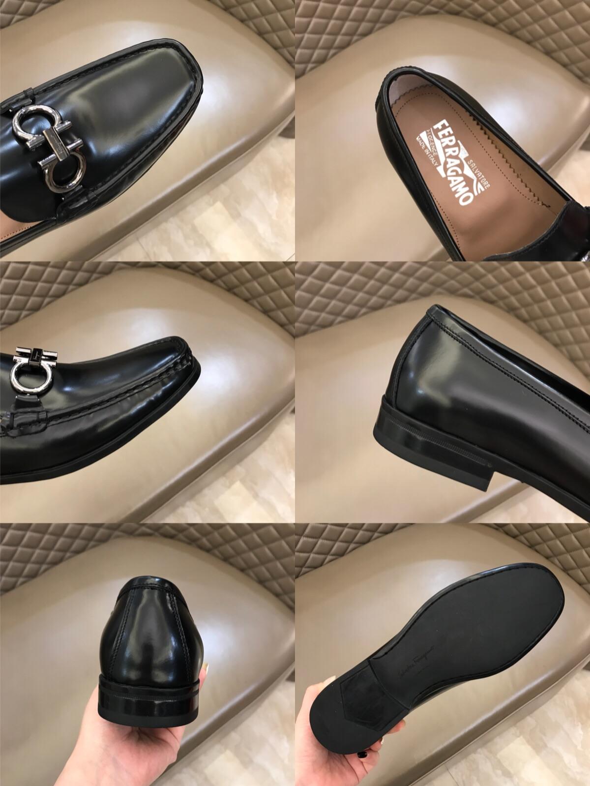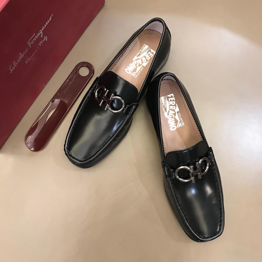 Replica Salvatore Ferragamo Black Bright leather Fashion Perfect Quality Loafers With Sliver Buckle MS02975