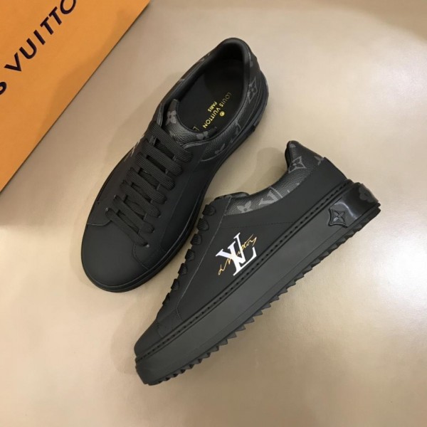 Replica Louis Vuitton Fashion Sneakers Black and LV print with black sole MS02854