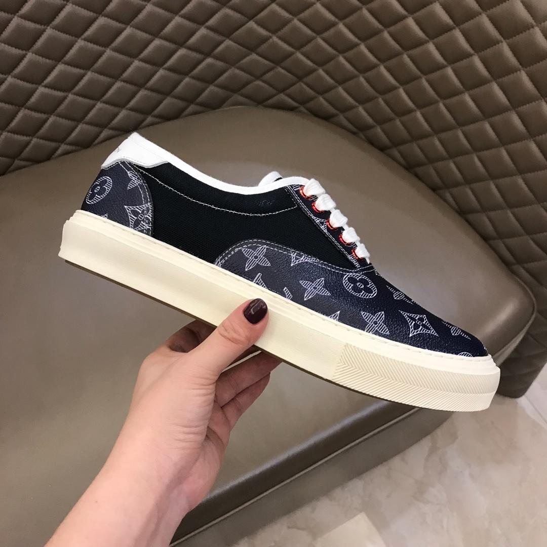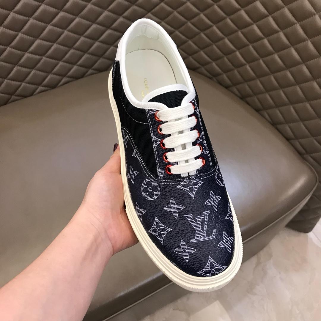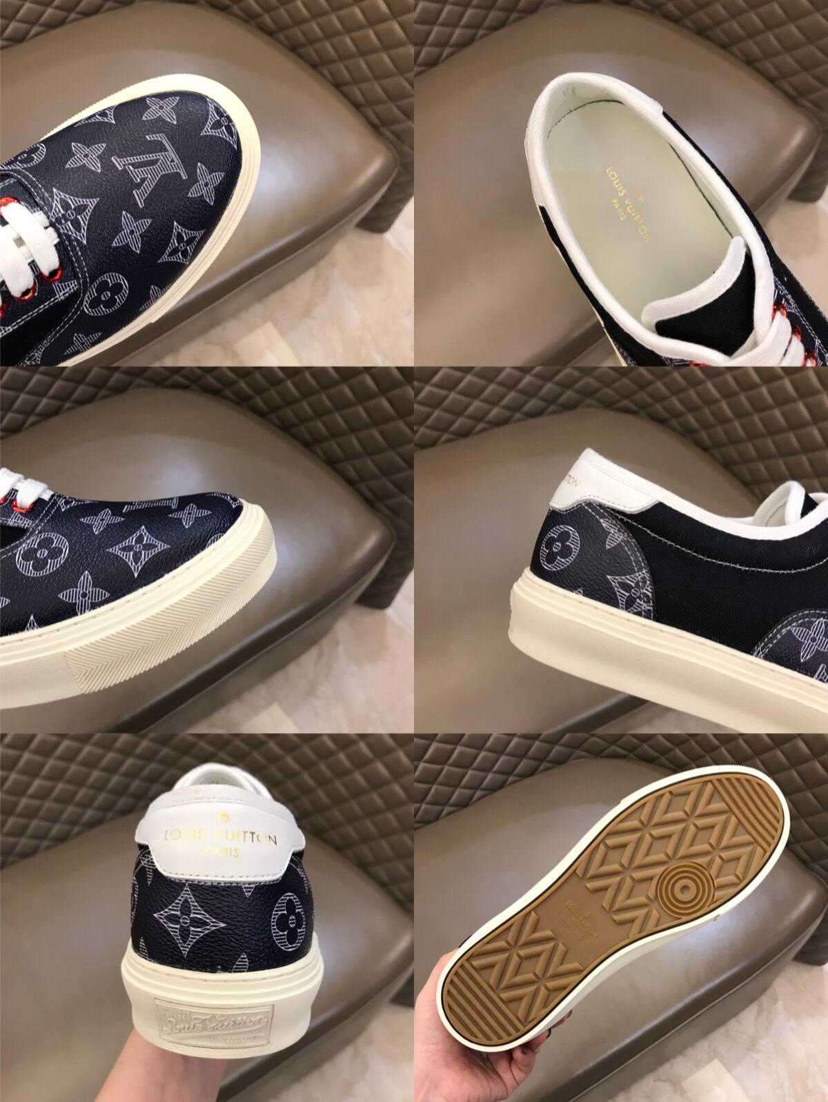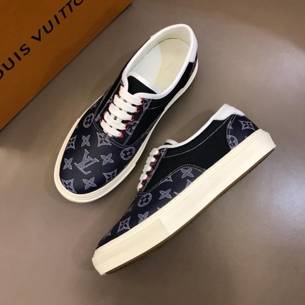 Replica Louis Vuitton Fashion Sneakers Black and Monogram Flower print and white sole MS02886