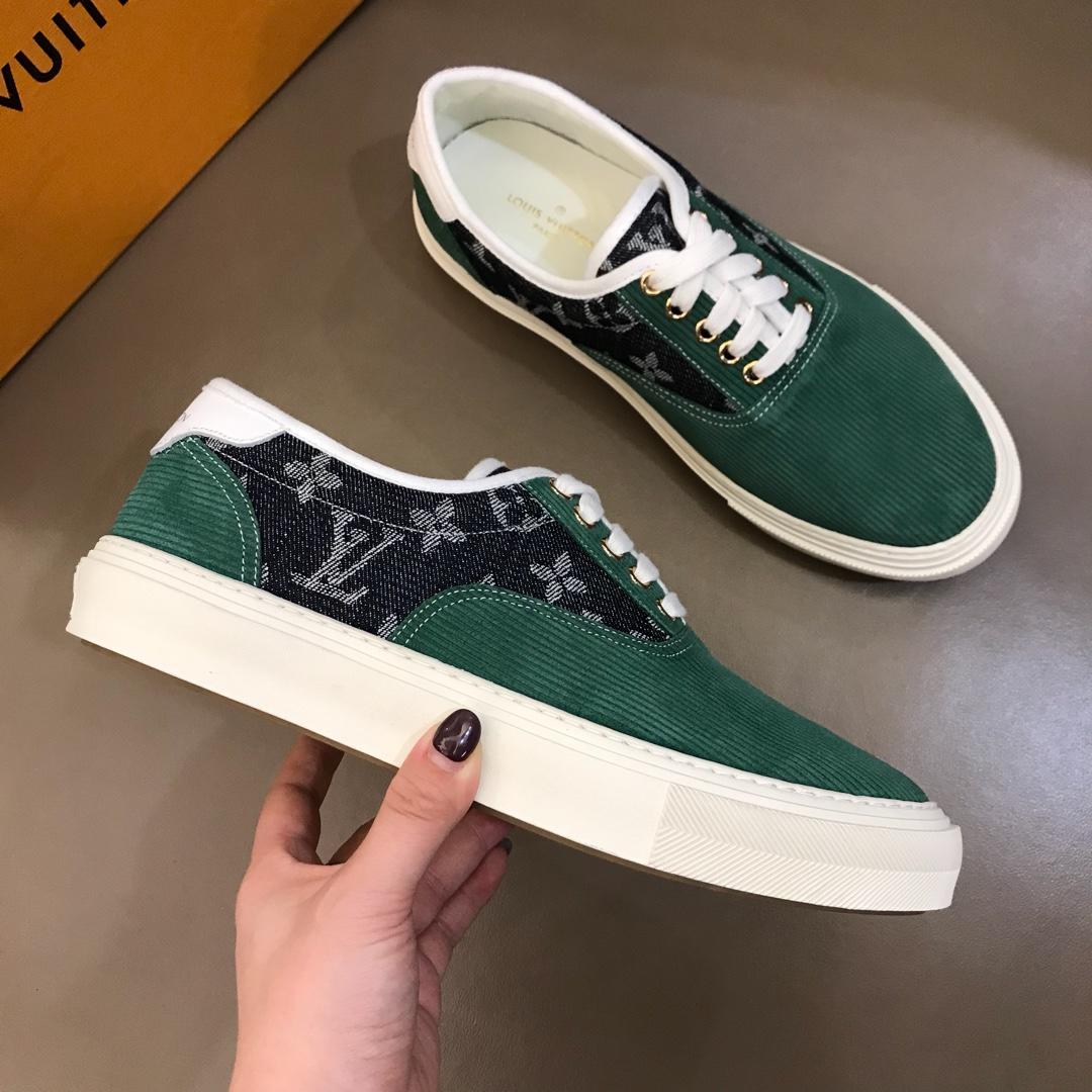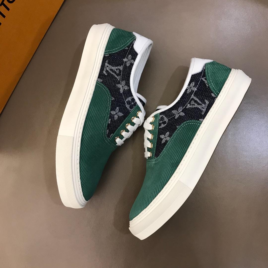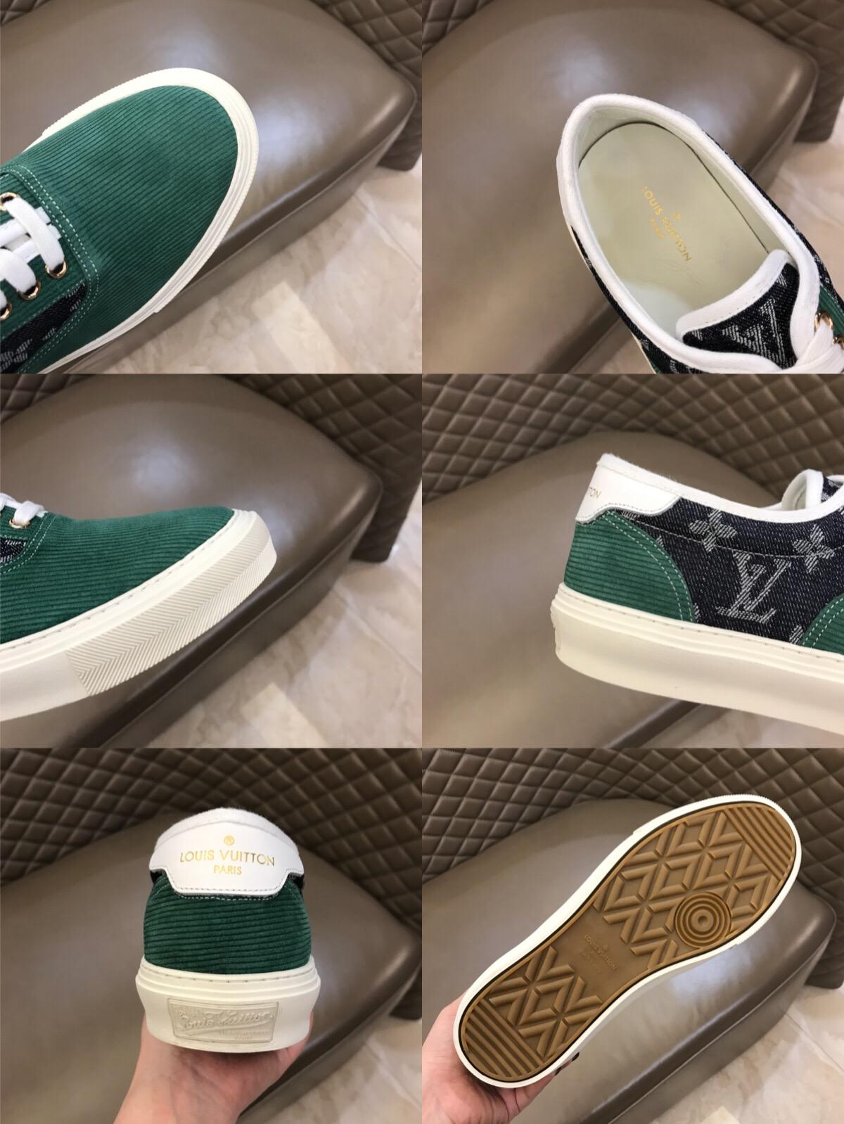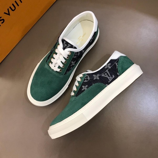 Replica Louis Vuitton Fashion Sneakers Green suede and black Monogram canvas with white sole MS02875