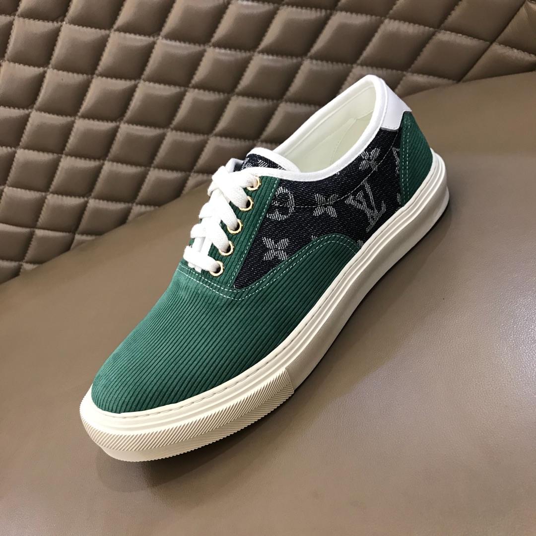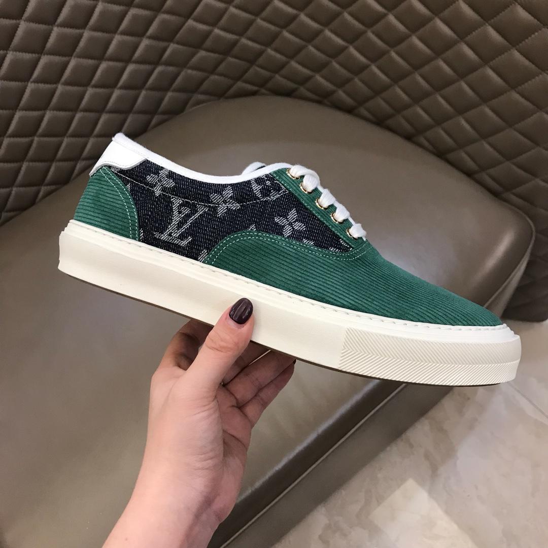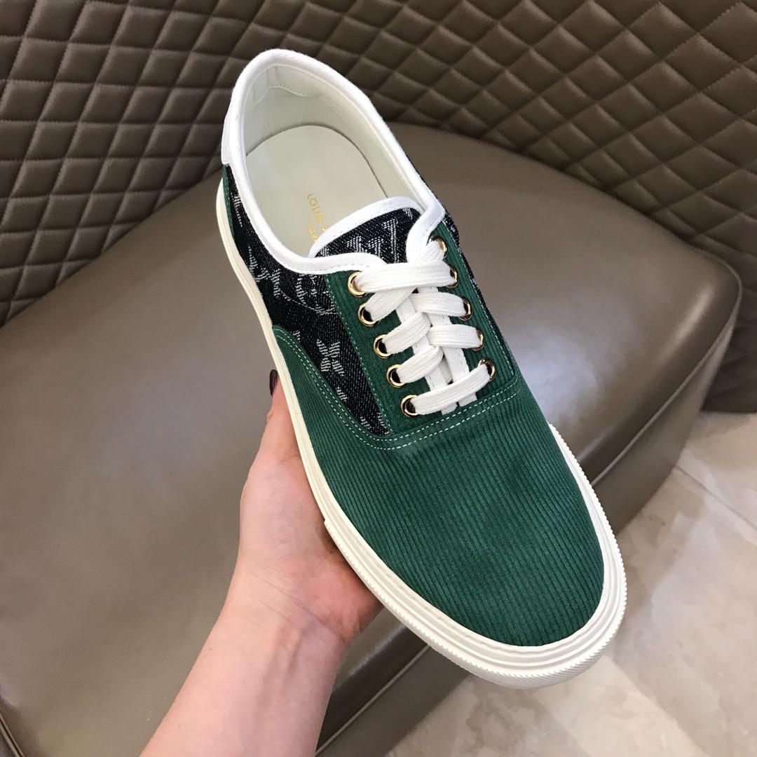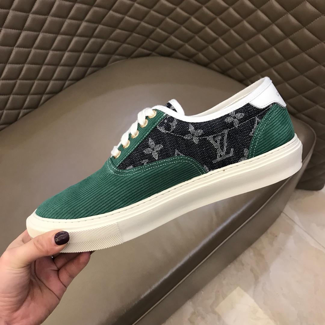 Replica Louis Vuitton Fashion Sneakers Green suede and black Monogram canvas with white sole MS02875