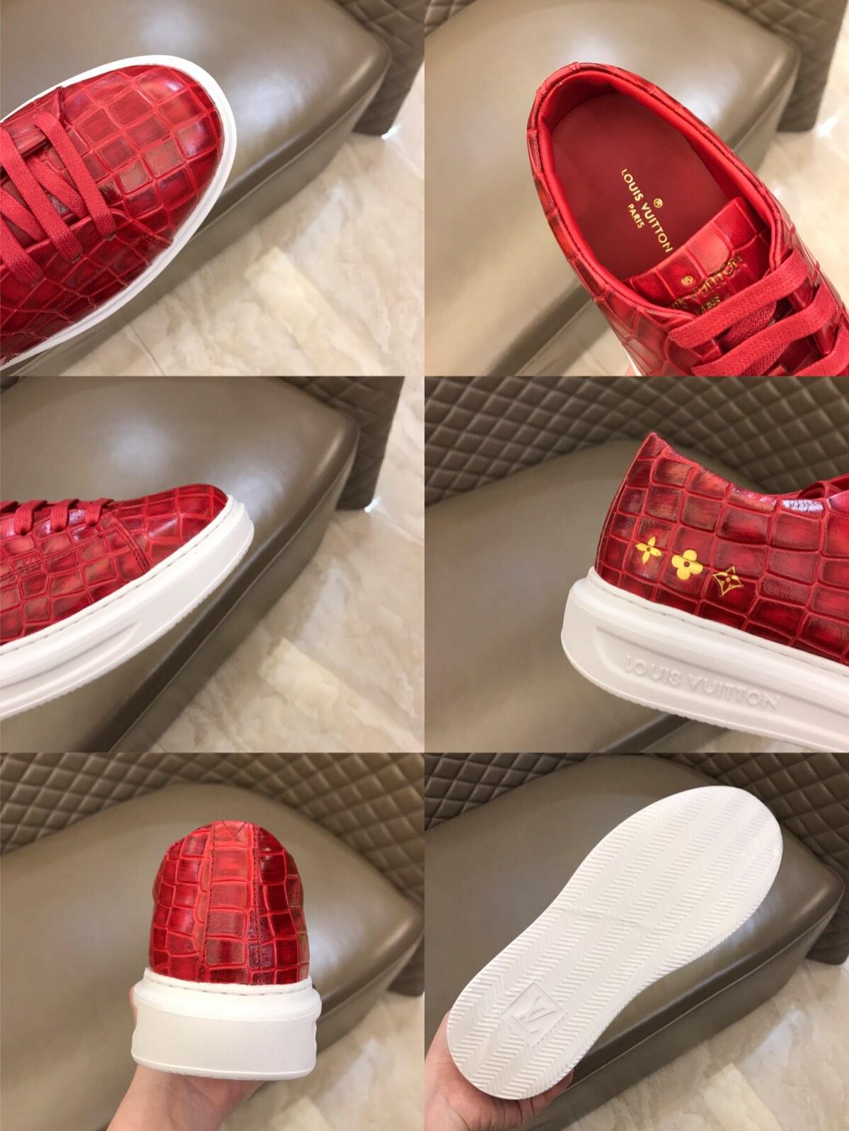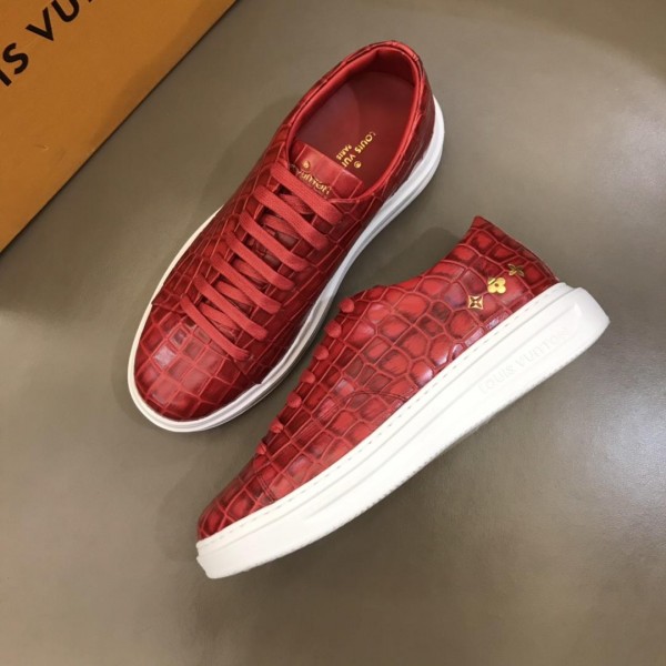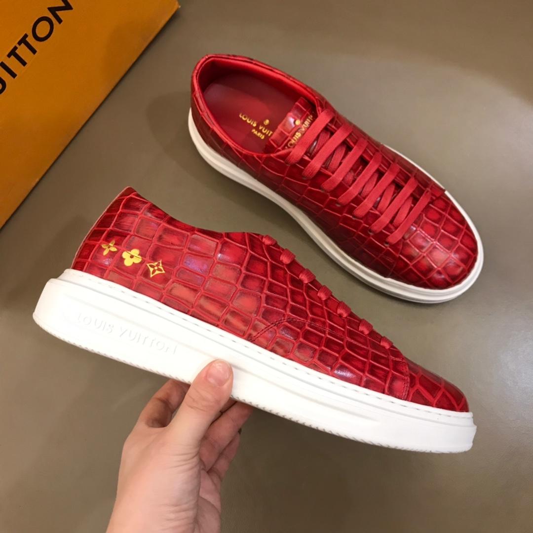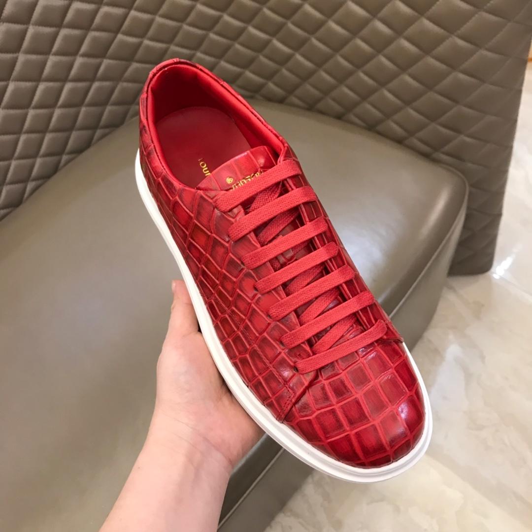 Replica Louis Vuitton Fashion Sneakers Red crocodile skin and gold Monogram Flower pattern with white sole MS02879