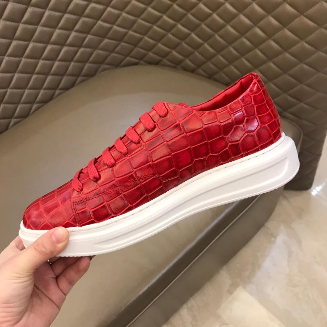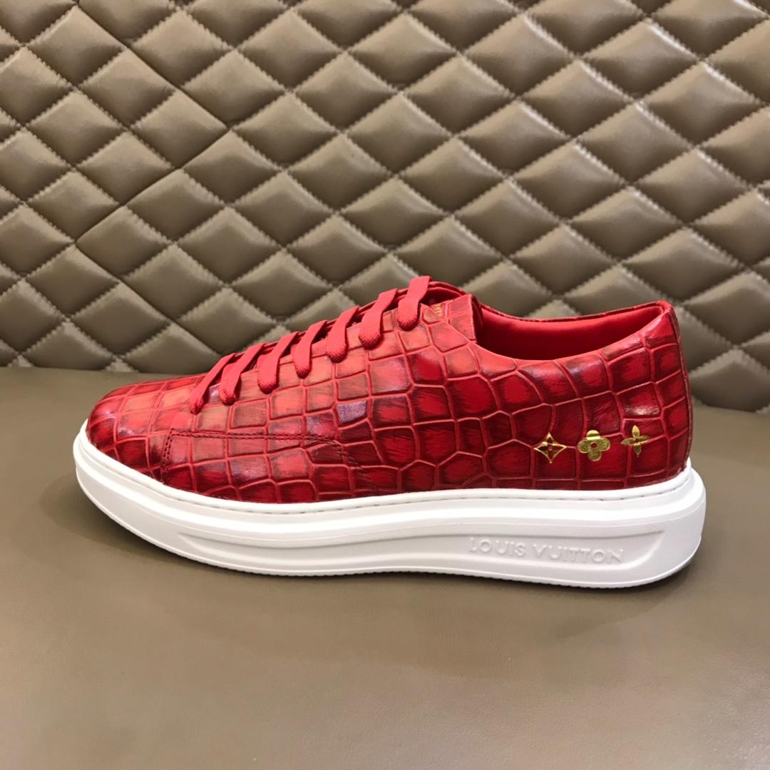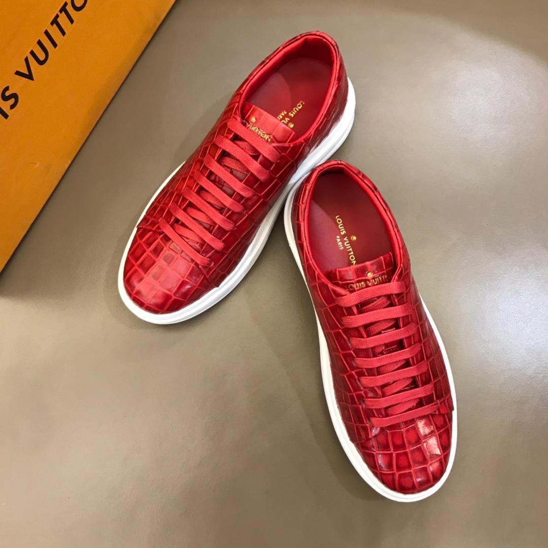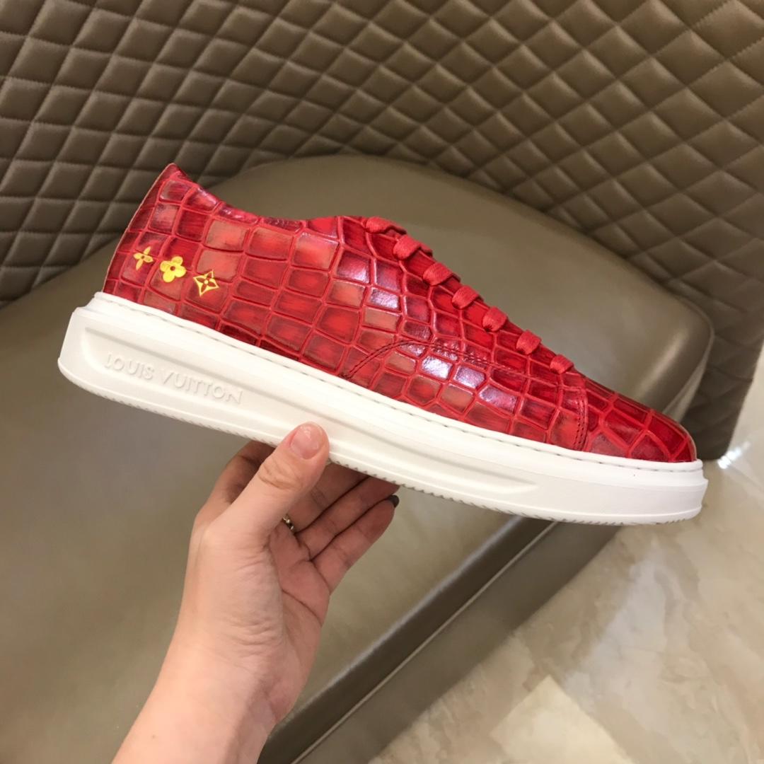 Replica Louis Vuitton Fashion Sneakers Red crocodile skin and gold Monogram Flower pattern with white sole MS02879