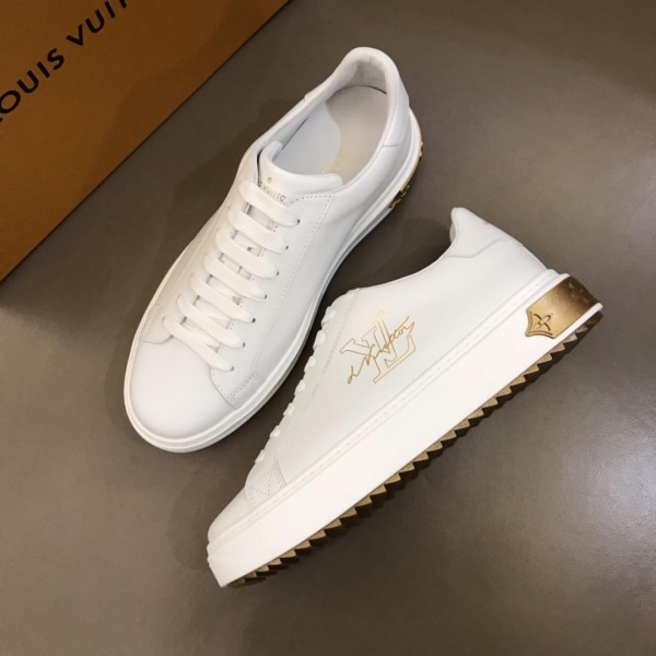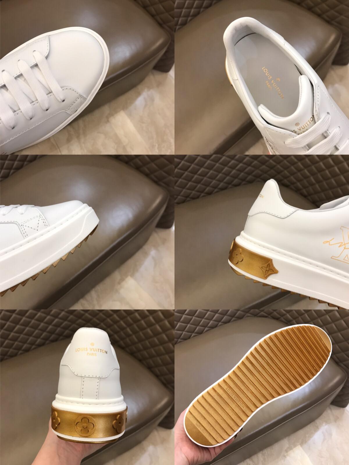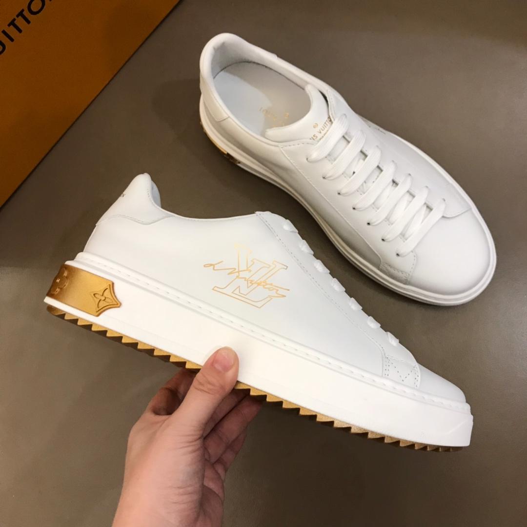 Replica Louis Vuitton Fashion Sneakers White and gold LV print with white sole MS02862