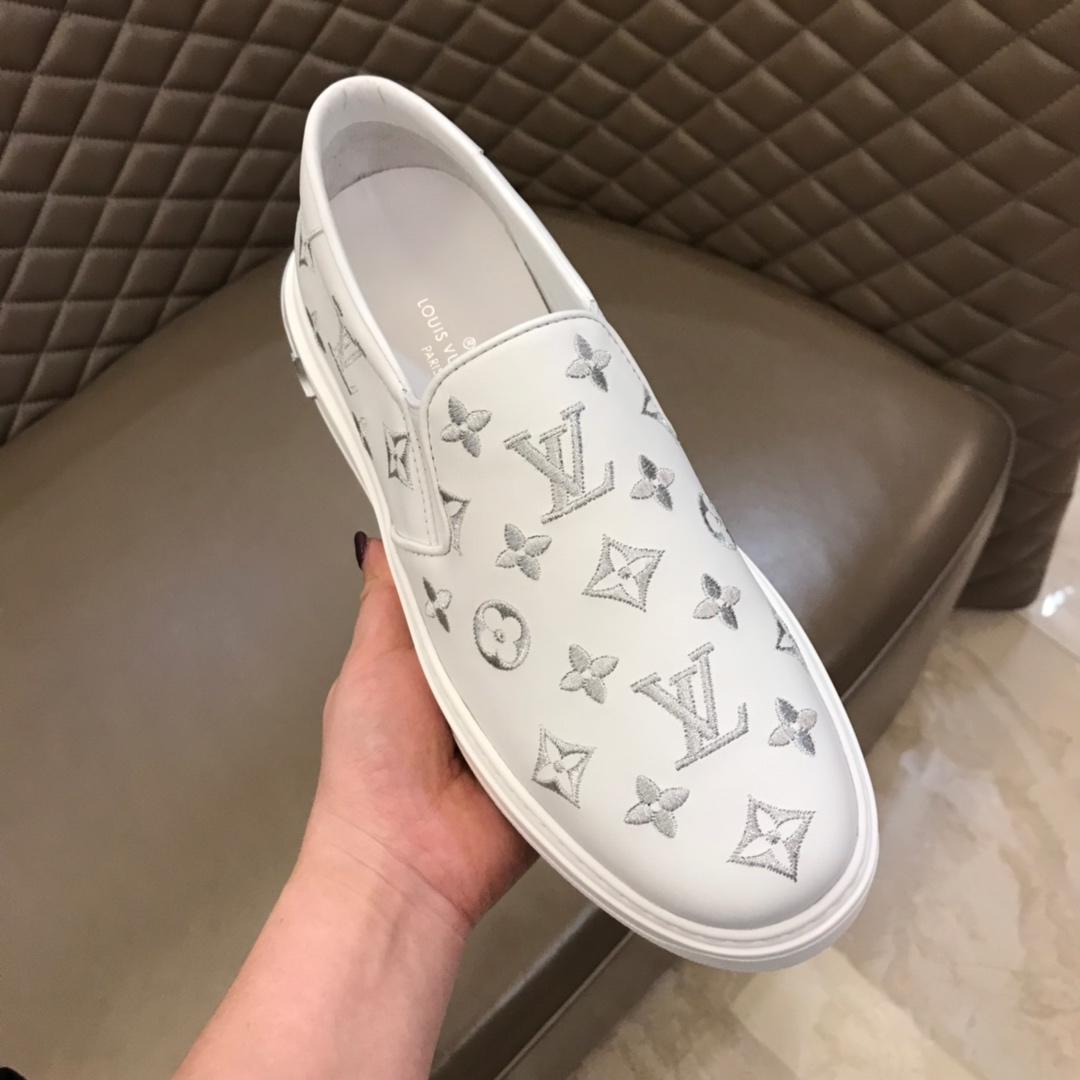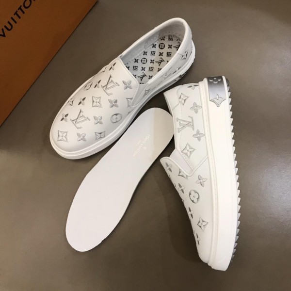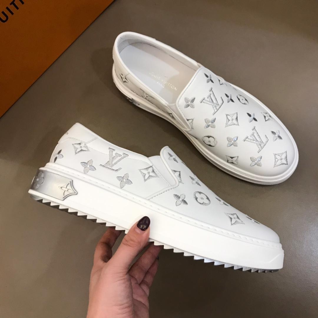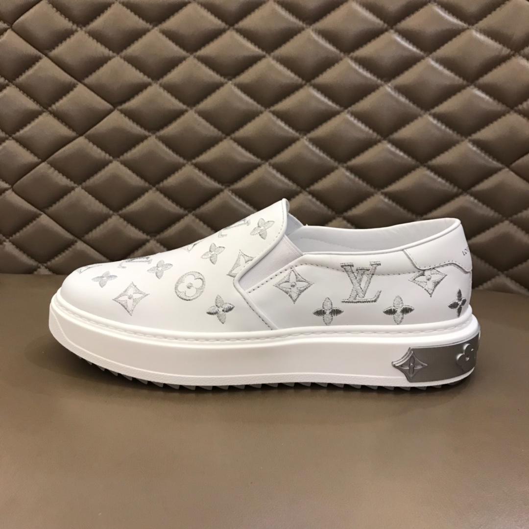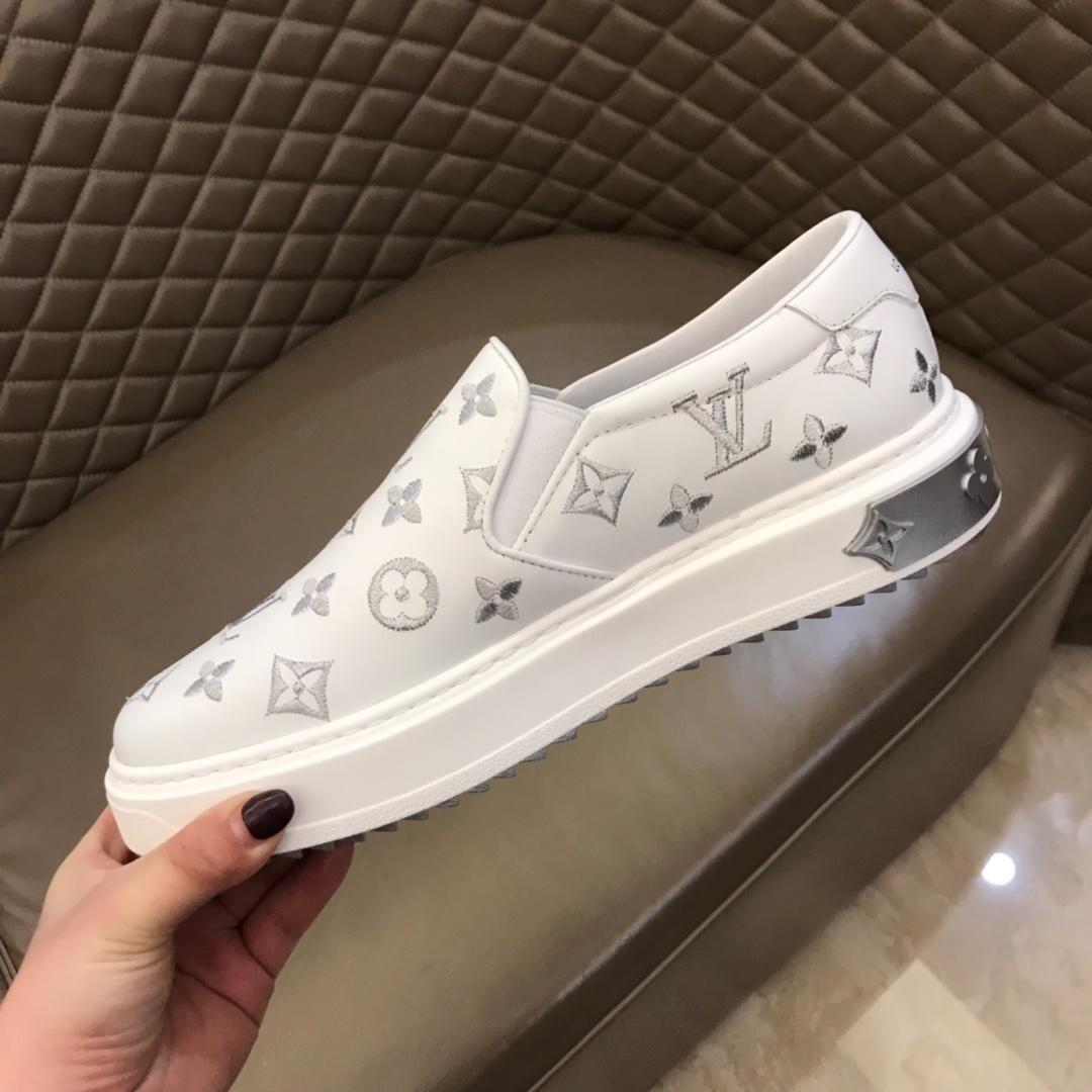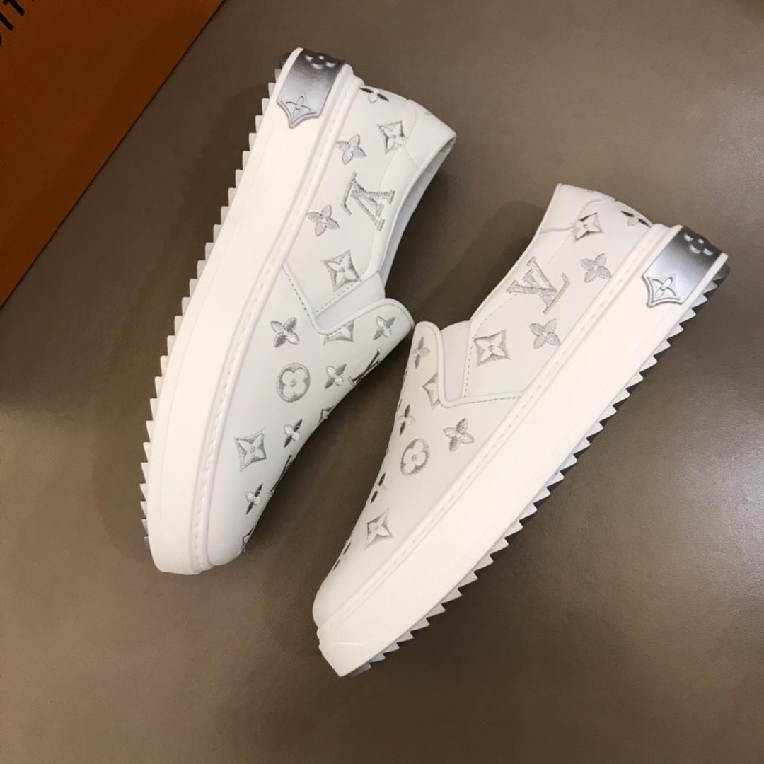 Replica Louis Vuitton Fashion Sneakers White and silver Monogram embroidery with white sole MS02851
