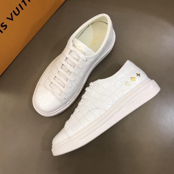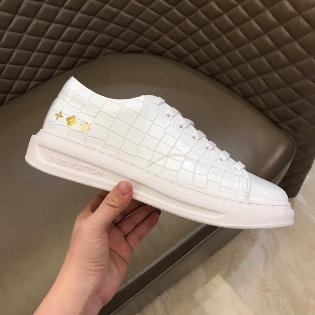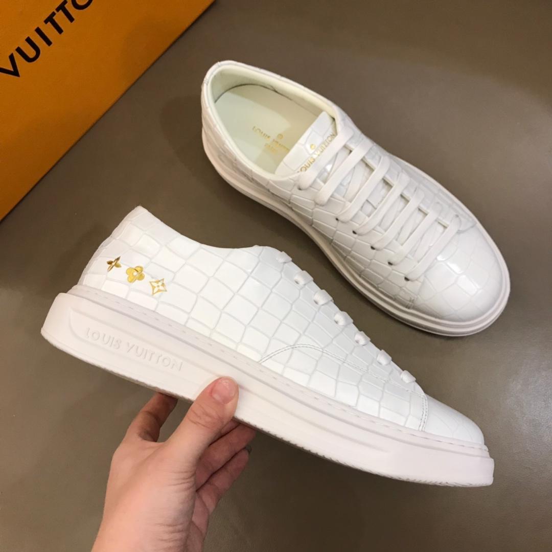Replica Louis Vuitton Fashion Sneakers White crocodile skin and gold Monogram Flower pattern with white sole MS02878