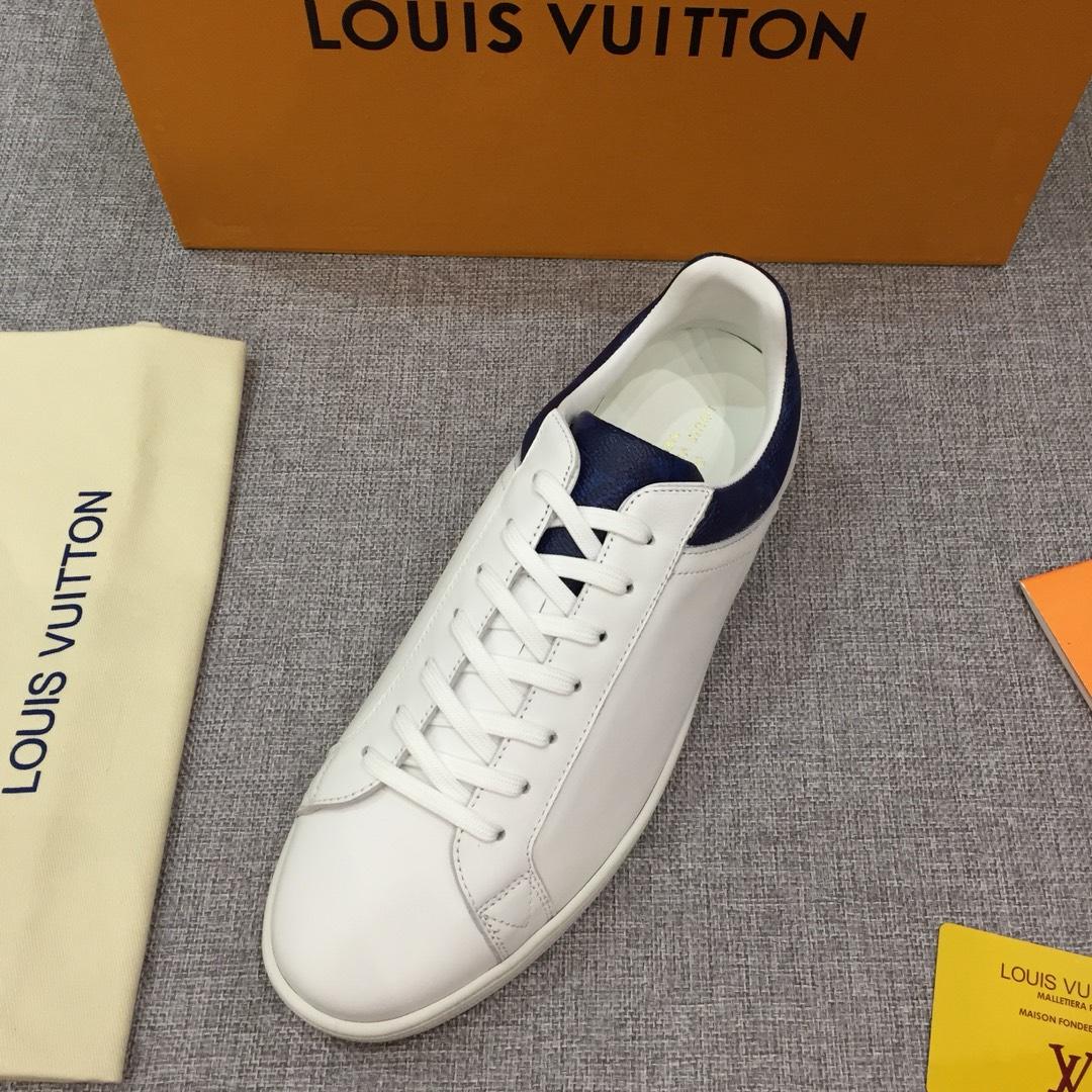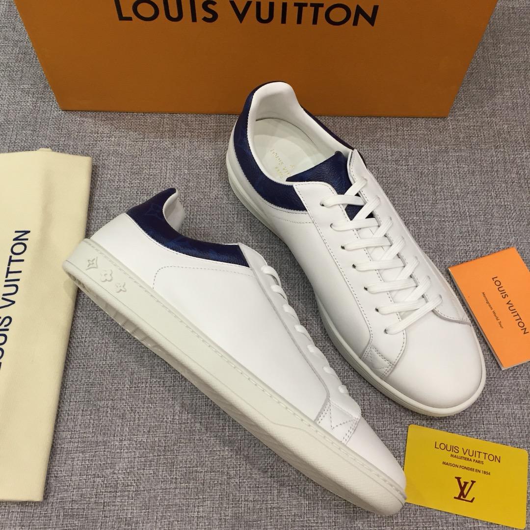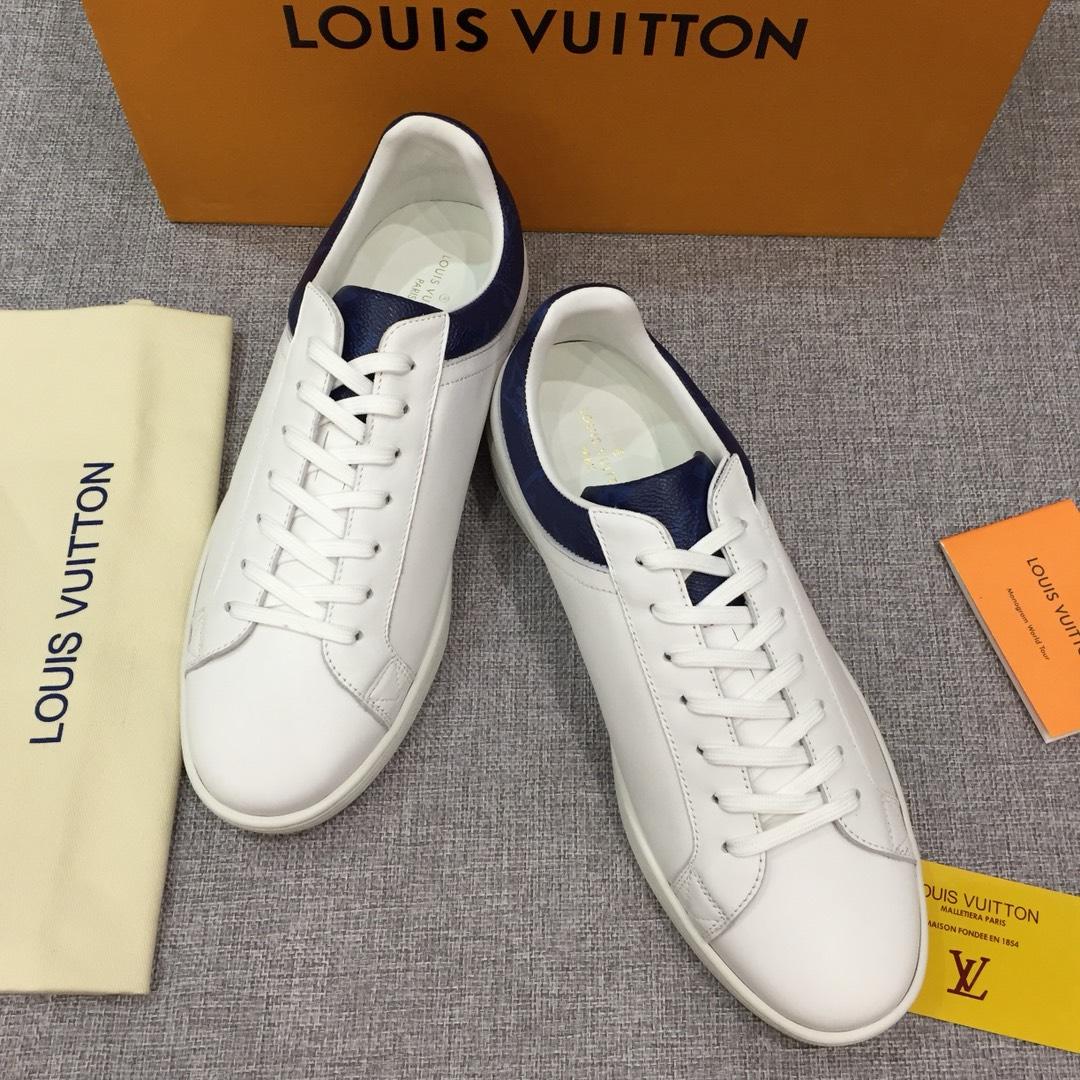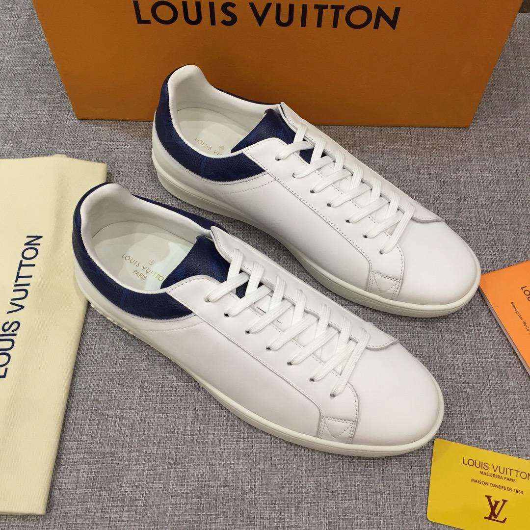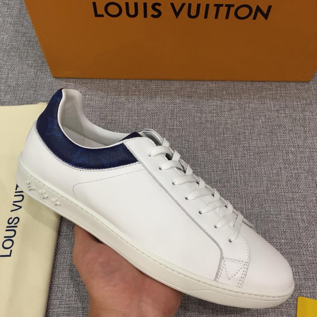 Replica Louis Vuitton Perfect Quality Sneakers White and blue trim details and white sole MS071091