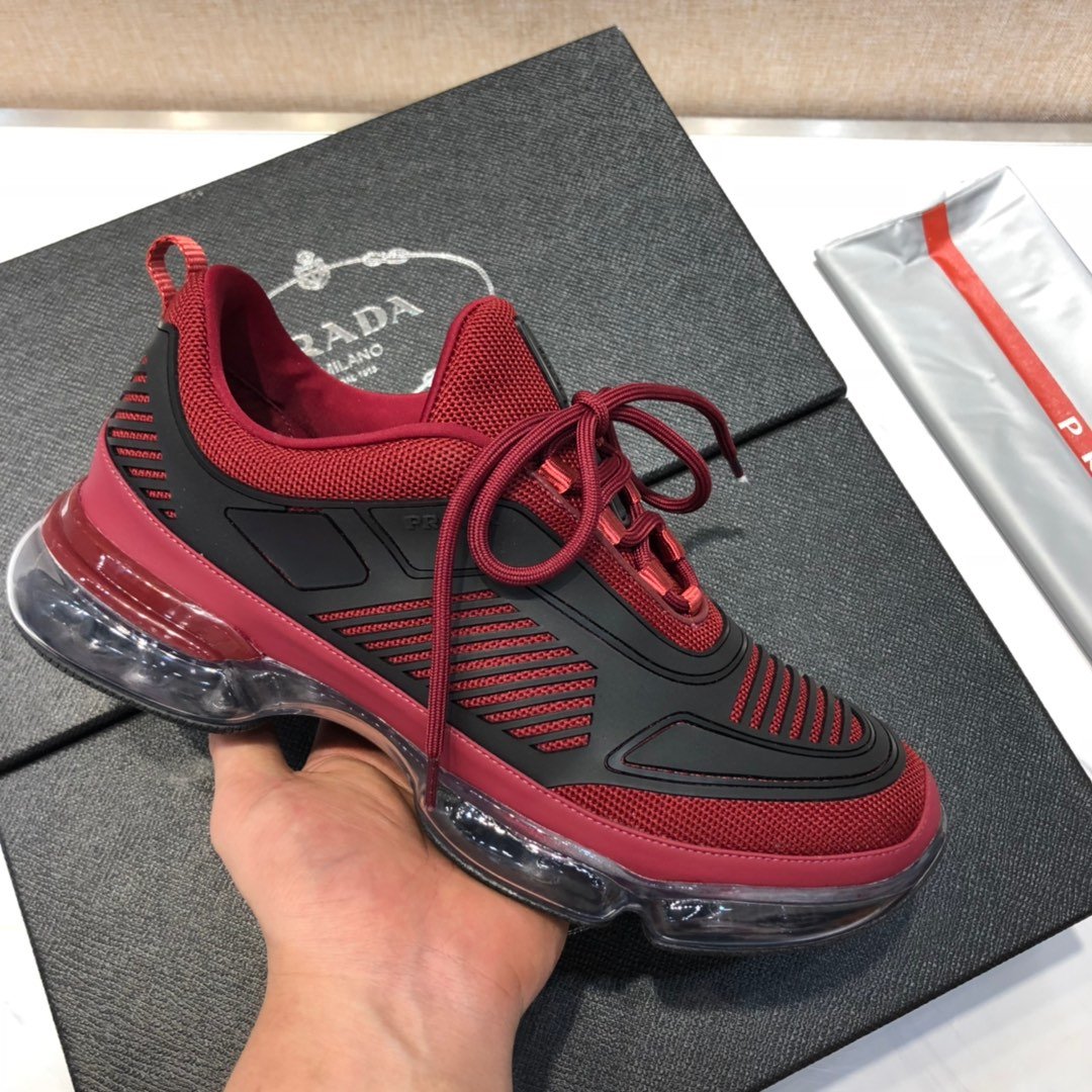 Replica Prada High Quality Sneakers Red and black rubber trim with transparent sole MS021116
