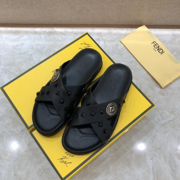 Replica Fendi Slippers with golden FF design in rubber MS07236